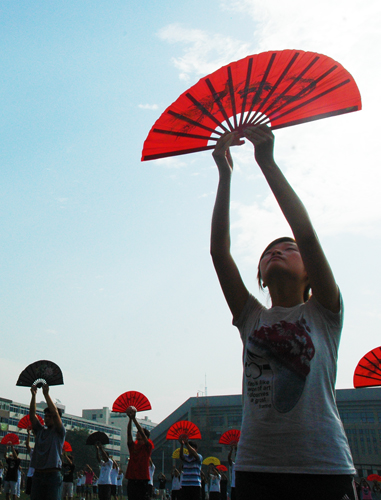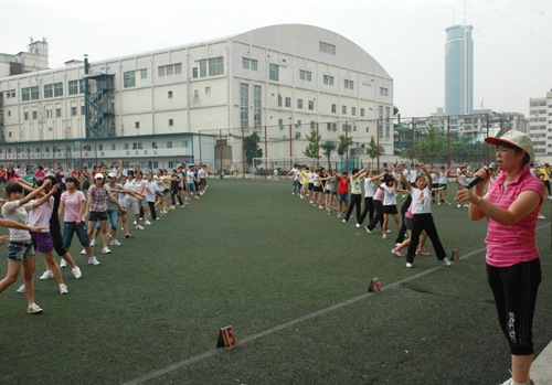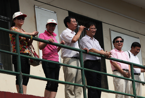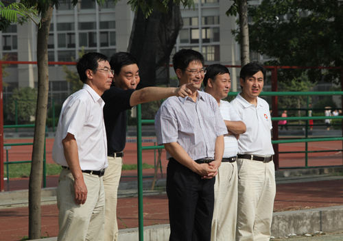 8月17日上午,省体育局局长王建军、副局长吴长龄、省十四运大型活动部有关负责同志一行在院党委副书记朱元利及有关系部负责人陪同下,于我院足球场等地现场观看了省十四运会开幕式有关节目排练情况,并热情慰问我院参排的1500余名师生。