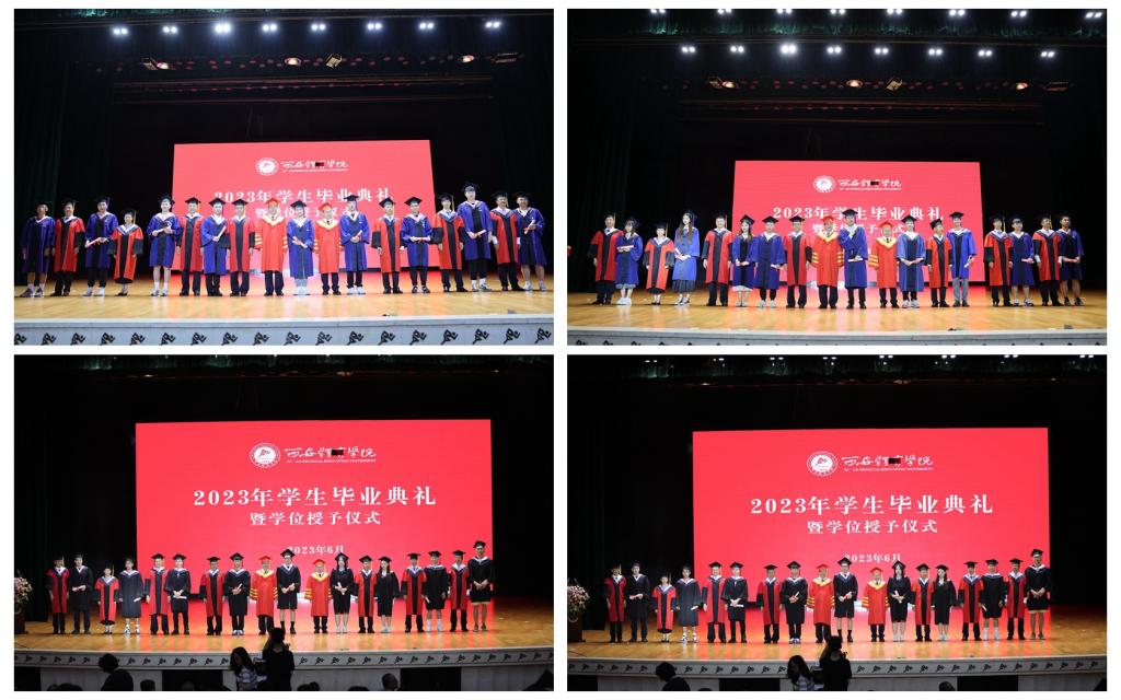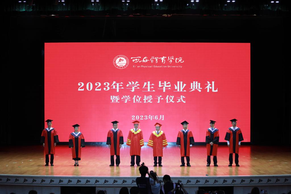 伴随着庄严的国歌声,毕业典礼拉开序幕。谢英宣读了《关于授予2023届本科毕业生学士学位的决定》,授予1989名本科毕业生获得学士学位,其中教育学学士学位1321人,艺术学学位398人,文学学士学位62人,管理学学士学位99人,理学学士学位109人。刘新民宣读了《关于授予2023届研究生硕士学位的决定》,其中授予163名研究生获得教育学硕士学位,189名研究生体育硕士专业学位(全日制),23名研究生体育硕士专业学位(非全日制)。