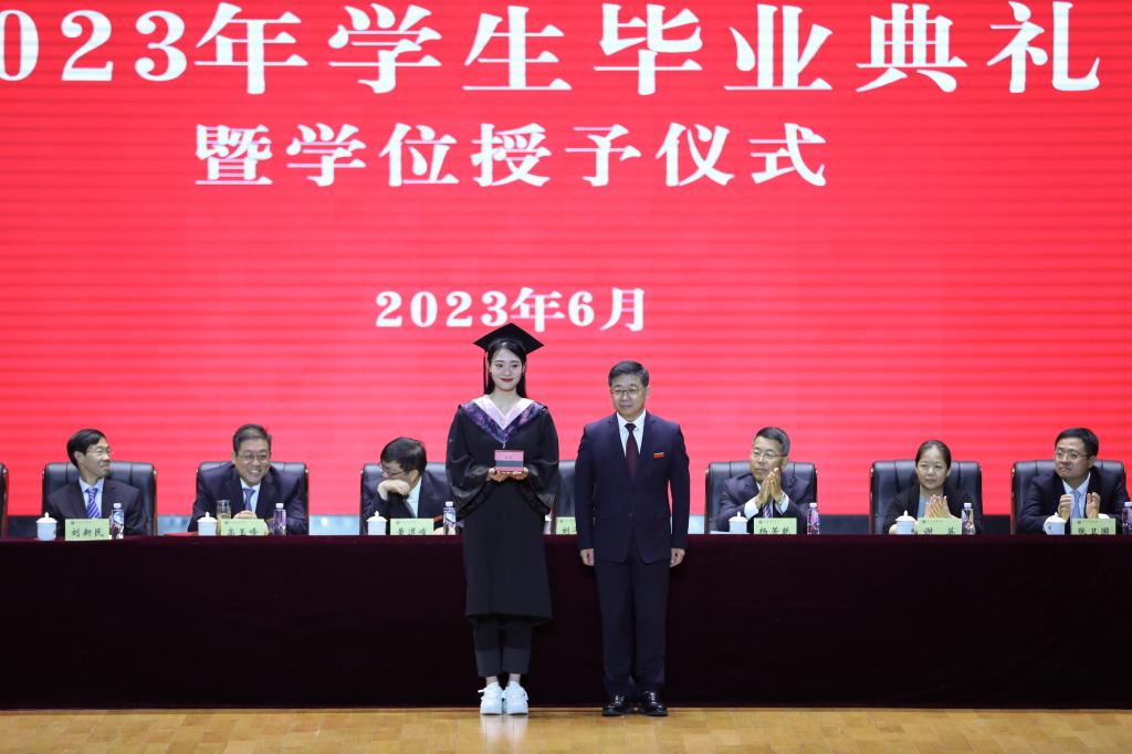 (副校长谢英宣读《关于授予2023届本科毕业生学士学位的决定》)