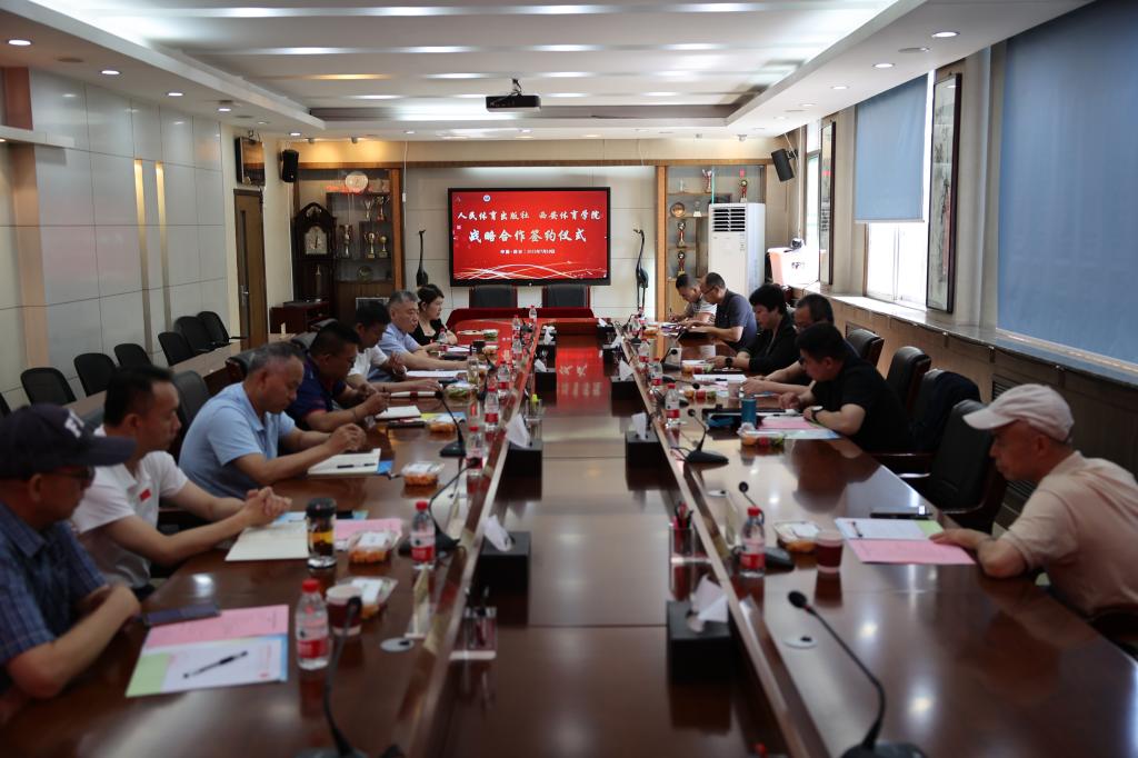 李百放向与会人员介绍了人民体育出版社的历史情况和发展方向,他表示人民体育出版社在教材出版、教材建设等方面具有丰富的经验和历史沉淀,出版社致力于为专业体院校提供更加优质服务。他认为双方可以围绕教材研讨、教材建设、学术专用书版以及体育专业图书推广等多个方面开展多种形式的合作,希望双方能互相协助,互相支持,互利共赢,取得更好教材建设成果创新。随后,李凡和张葆欣就英国365上市公司官网与人民体育出版社战略合作协议进行签约。