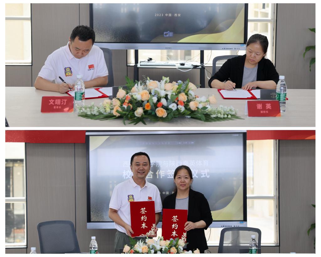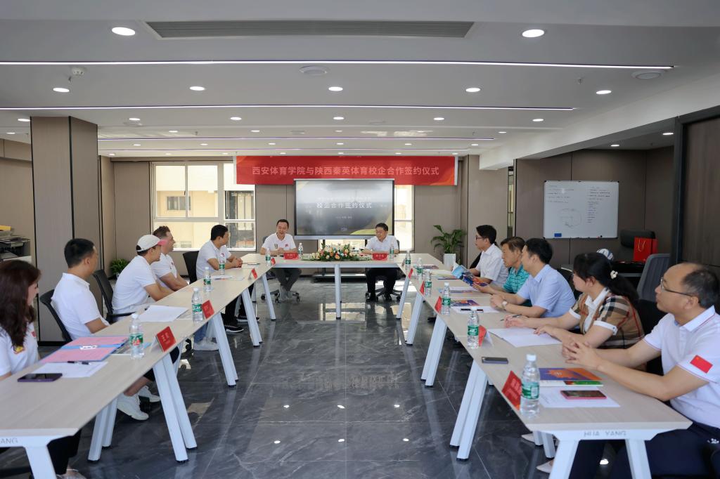本网讯 为将主题教育创新思想转化为指导实践、推动工作的强大动力,在全校上下形成求真务实、比学赶超的工作作风,助推365官网专业建设和人才培养质量取得实实在在的成效。7月22日上午,校长刘子实利用周末,带队考察了陕西秦英文化体育有限公司(以下简称“秦英体育”),并与该公司签订了校企合作战略框架协议,副校长谢英出席。党校办主任张军、科研处处长高新友、体育教育学院院长马海涛、运动训练学院党委书记王鑫、足球学院院长席海龙参加了签约仪式。