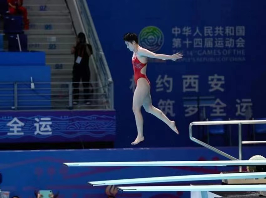 参加跳水女子1米板比赛的是2020级学生王壹,今年22岁,曾在2022年全国跳水冠军赛女子双人3米板中,搭档司雅杰,以总分291.75分获得铜牌。在今年的全国跳水冠军赛女子一米板比赛中,获得第七名。