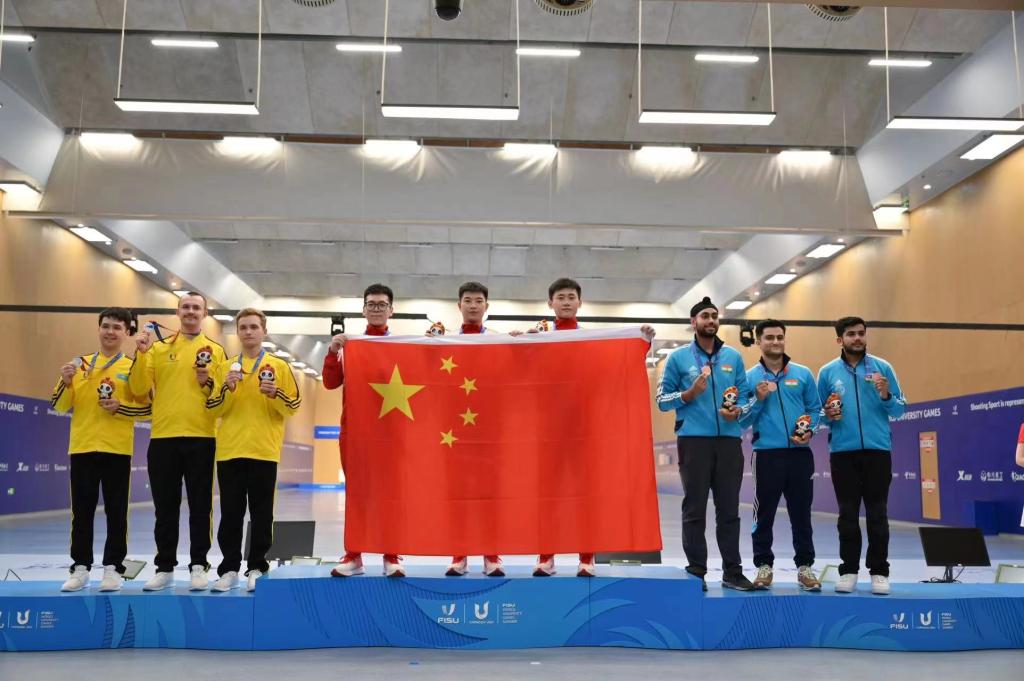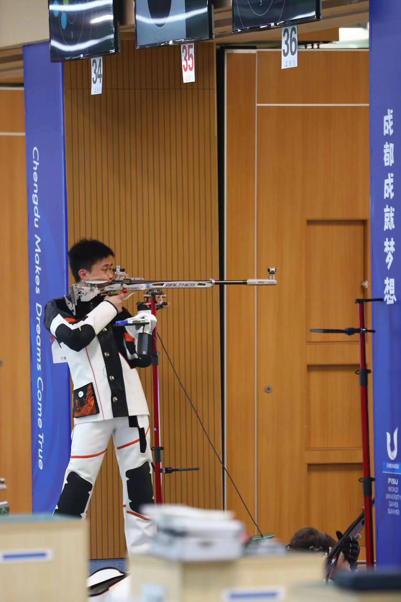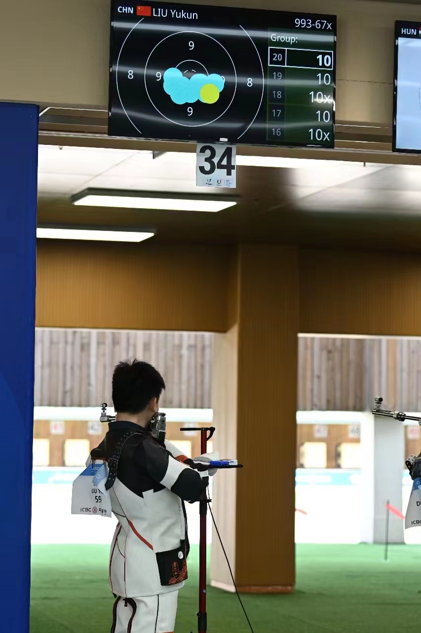 本网讯 7月30日,在第三十一届世界大学生夏季运动会射击项目男子50米步枪三种姿势比赛中,365官网2018级学生刘宇坤搭档队友,凭借整体的出色发挥,以总成绩3529环力克哈萨克斯坦队获得金牌。