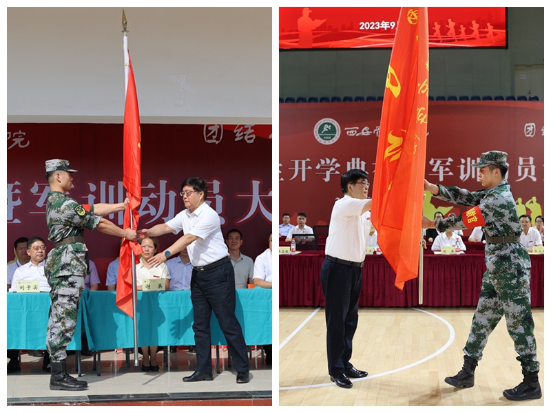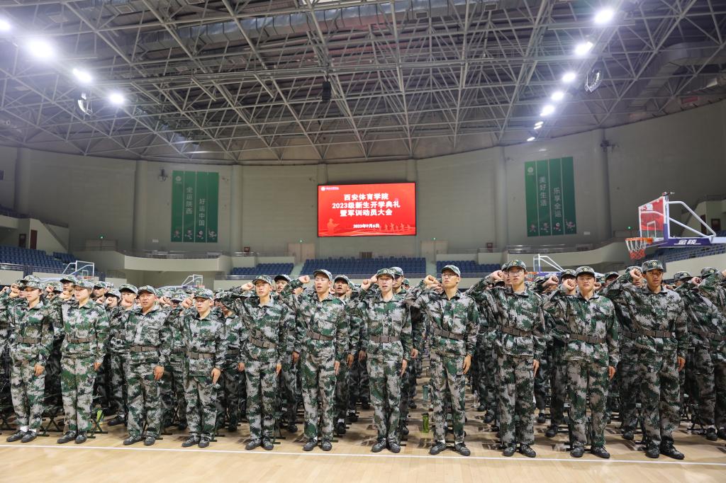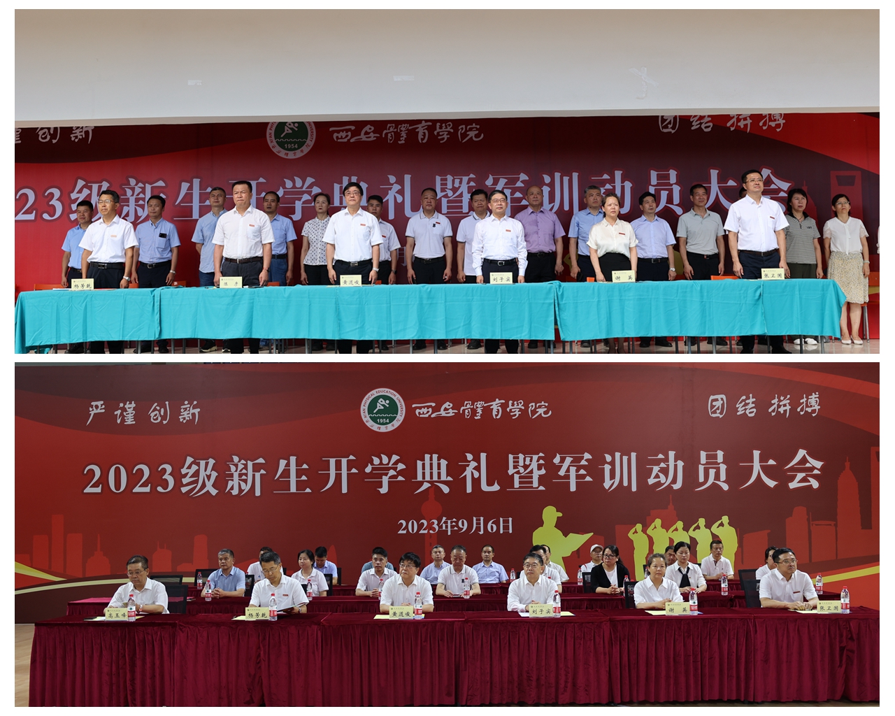 本网讯 9月6日,365官网2023级新生开学典礼暨军训动员大会分别在含光校区第一田径场和鄠邑校区手球馆隆重举行。全体校领导出席,相关职能部门负责人及教师代表、军训教官代表和2023级新生辅导员、全体新生参加典礼。党委副书记杨芳乾和高玉峰分别在含光、鄠邑校区主持大会。