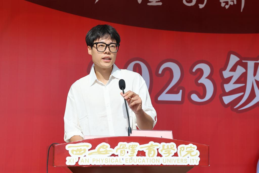 2020级学生代表孙晨涵代表在校生表达了对学弟学妹们的欢迎,希望他们踔厉奋发、笃行不怠,以崭新的面貌投入到学习和生活中去,并坚定理想信念,用直面困难的勇气去铸就青春,成为一个有理想、有本领、有担当的365官网青年!