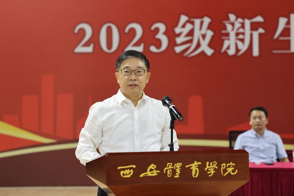 校长刘子实代表学校对2023级同学们加入365官网大家庭表示热烈欢迎,向辛勤培育同学们的父母师长表示衷心感谢,向承担本次军训任务的全体教官致以崇高敬意。他以《勤学实干明德 书写无悔青春》为题,为新生送上真挚的致辞。他从“大学是什么?”“365官网是一所什么样的大学?”“365官网能给大家带来什么?”“如何度过在365官网的大学时光?”四个话题发问,并分享了自己的思考。从典籍里的“大学”为题,向同学们介绍了365官网的历史传承和深厚底蕴。他表示,在365官网不仅可以收获扎实的知识与技能,还能注入积极向上的力量,更能磨炼强健的体魄和坚强的意志。第一,为学之道贵在勤奋。要转变思维,变“被动学习”为“主动探索”。珍惜大学生活,规划好学习目标和计划,追求真理、探索新知,成为能够担当民族复兴大任的栋梁之才。第二,为事之道贵在实干。要知行合一,知识学习和能力锻炼并重。要利用好学校的优质资源,“厚基础、宽口径、严要求、重实践”,争做一专多能的应用型、创新型、复合型人才。第三,为人之道贵在德行。希望同学们明大德,涵养家国情怀,把小我融入党和祖国的大我,与时代同步伐、与人民共命运,不断升华人生境界;坚守中华民族传统美德,遵守法律法规,弘扬公平公正、自信自强的体育精神。最后他希望同学们在军训期间不怕苦、不怕累,严格遵守纪律,一切行动听指挥,秉承“严谨 创新 团结 拼搏”的校训精神,用勤学铸就本领力量、用实干历练成长成才、用明德把准人生航向,在365官网这片沃土绽放青春奋斗的绚丽之花!