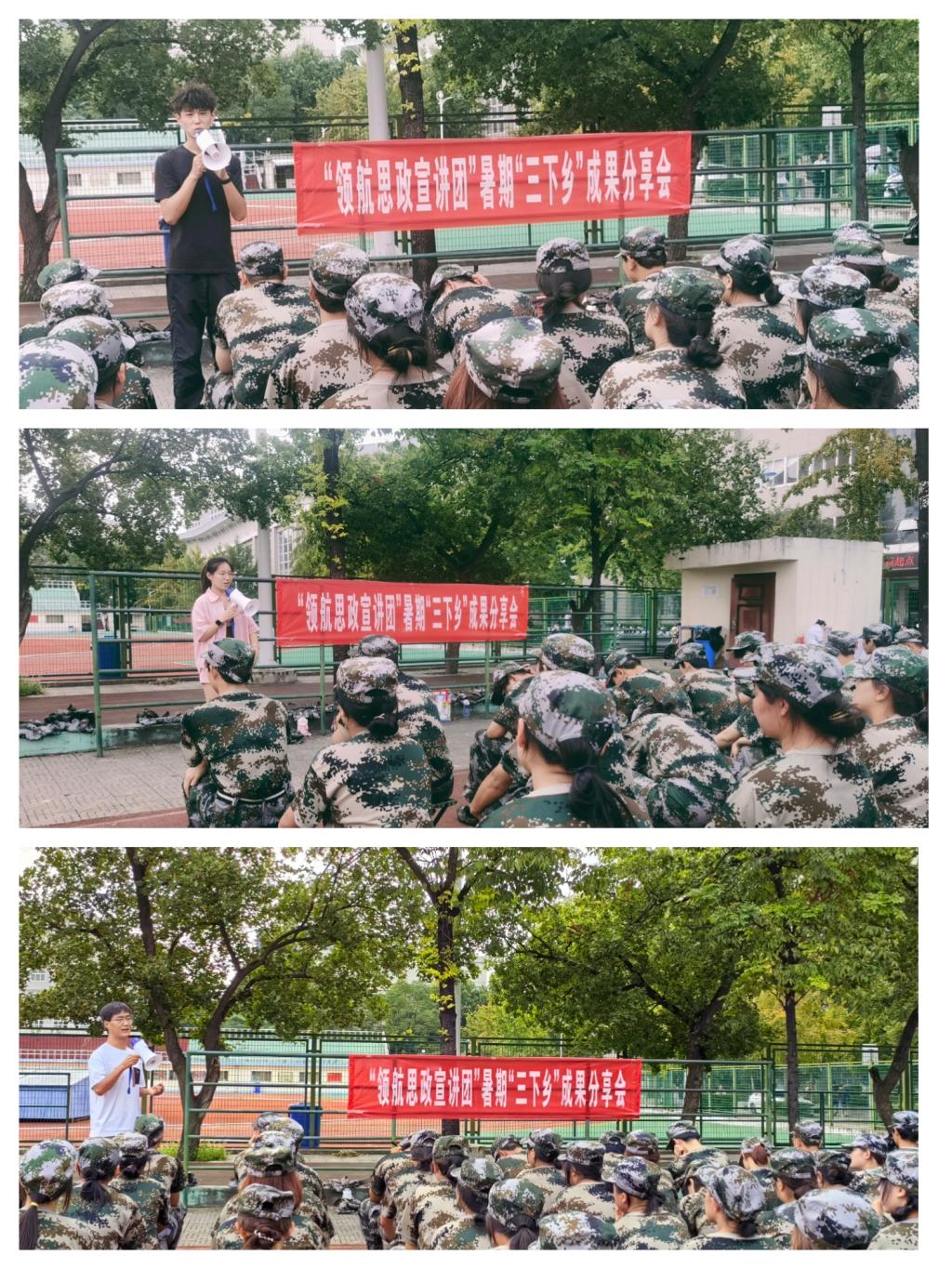会后,宣讲团成员来到学校第二田径场,向2023级新生分享暑期“三下乡”活动的个人心得体会,受到新生的热烈欢迎。