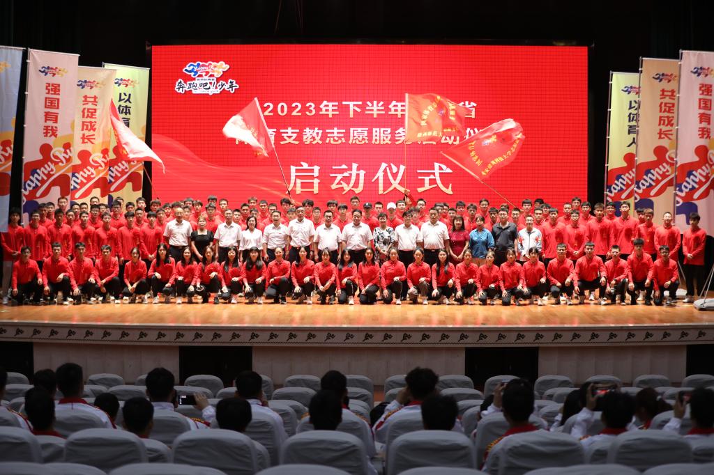 本网讯 9月17日上午,由陕西省体育局负责、365官网作为牵头单位的2023年下半年陕西省体育支教志愿服务启动仪式在学校艺术大礼堂举行。陕西省体育局局长尤磊、副局长李富生,英国365上市公司官网党委书记黄道峻,陕西省体育局青少年体育处处长苏晓刚、副处长王玉刚以及西安交通大学、陕西师范大学、西安建筑科技大学等四所高校支教领队,商洛市、黄龙县支教单位代表等出席了启动仪式。仪式由苏晓刚主持。