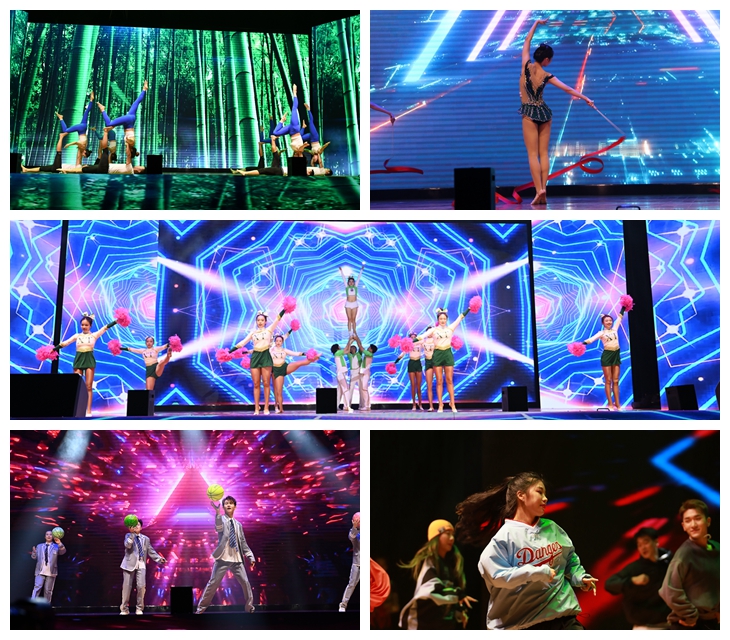 操舞组合《舞动青春》将瑜伽、艺术体操、啦啦操、花样篮球、街舞表演融为一体,展现出365官网学子朝气蓬勃、意气风发的青春活力,将晚会的气氛推向高潮。