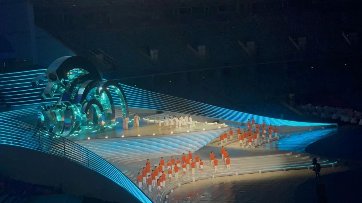 在近两个月的排演中,全体师生面对高温天气、高强度训练和日夜颠倒的节奏,坚持发扬不怕吃苦、顽强拼搏的精神,克服苦难,始终以饱满的热情、昂扬的斗志、优异的状态奋战在排演一线,顺利完成百余次排演任务。其中一天因排演时突下大雨,场地湿滑,2021级一名学生不慎跌倒受伤,带队教师紧急处理,与亚组委保障组工作人员协同配合,以最快速最妥善的方法保证了受伤学生的生命安全。学校各级领导也十分关注该生情况,通过各种方式表达了对全体参演师生的关心和问候,这让身在异乡的35位365官网师生感受到家人的关爱和温暖。