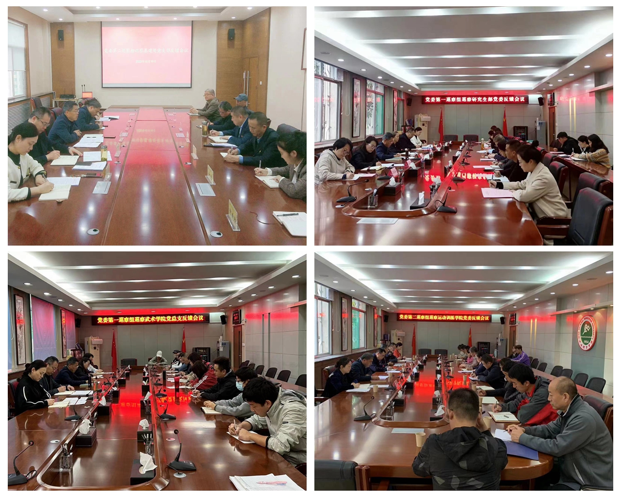 本网讯 近日,根据校党委安排,党委第一、第二巡察组召开巡察反馈会,分别向运动训练学院、武术学院、研究生部、基建处党组织反馈第二轮校内巡察发现的问题并提出整改要求。被巡察单位的分管领导校长李富生、副校长谢英分别出席会议并讲话。反馈会由党委副书记、纪委书记、监察专员、党委巡察工作领导小组副组长杨芳乾同志主持。