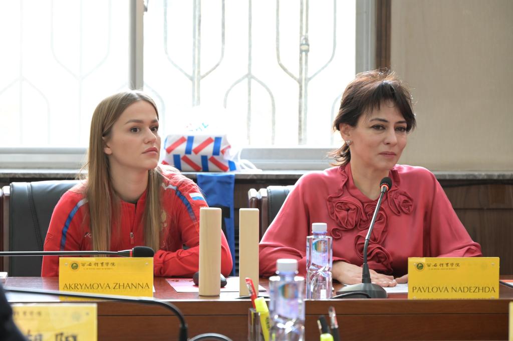 本网讯 11月19日,全俄罗斯击木运动联盟主席巴甫洛娃˙那杰士达、教练阿克里莫娃˙葵娜一行来校交流访问。谢英副校长会见来访客人并座谈,党委宣传部、竞赛训练处、国际交流中心负责同志参加座谈会。