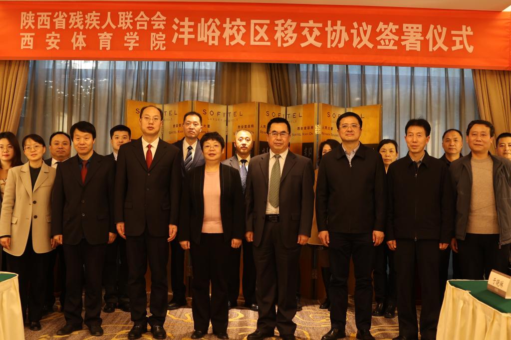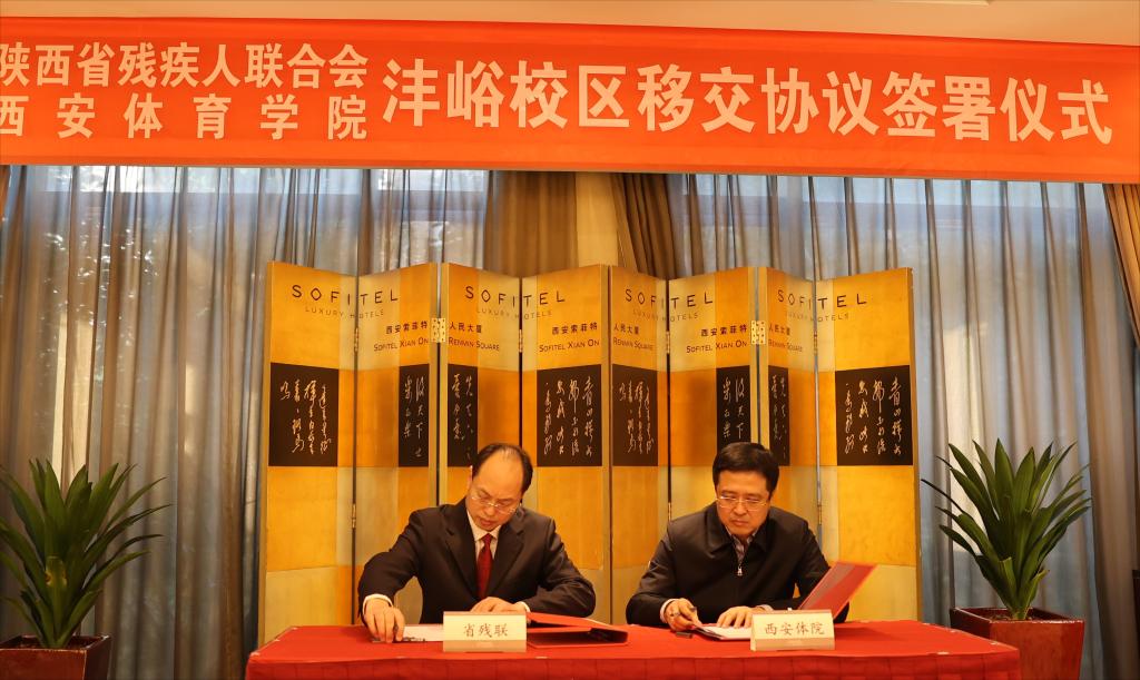 本网讯 12月7日下午,365官网与陕西省残疾人联合会在人民大厦顺利完成移交沣峪校区签约仪式。省残联党组书记、理事长刘贤荣,省残联党组成员副理事长童博与365官网校长李富生、副校长张卫国出席移交仪式。