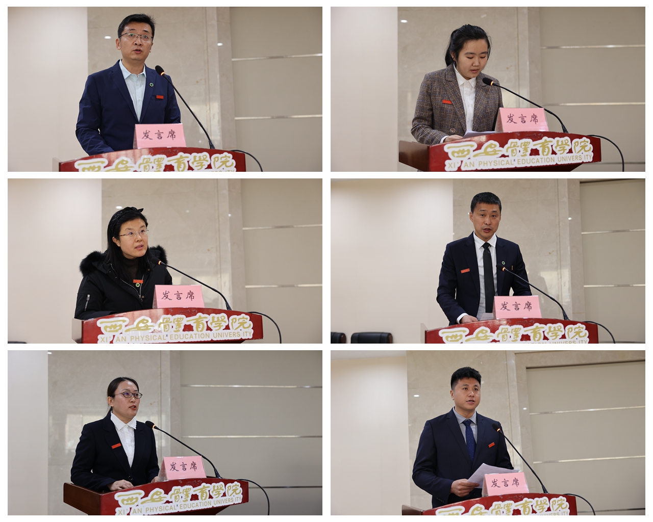 副处级干部代表李明、科级代表安锐、科研人员代表潘玮敏、教练员代表黑小虎、教师代表王晓艳、辅导员代表王涛分别代表教职工围绕个人工作分享汇报了百日奋战工作中的所思所想、所感所得,他们表示,在接下来的工作过程中,将增强“紧迫感”,立足自身岗位,明确工作职责,以饱满的热情和端正的态度,抓好当前工作,全面投入学校发展建设,为“百日奋战”取得圆满成功贡献自身力量。