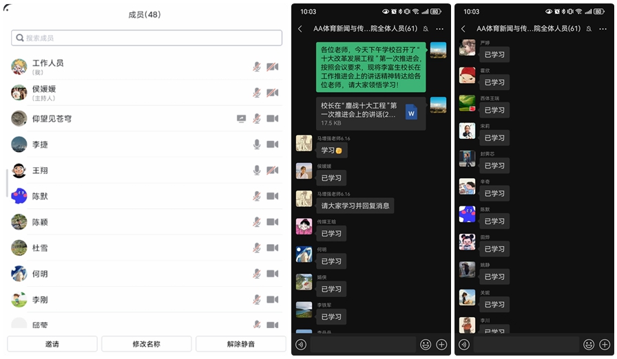 3月18日晚七点,第一次推进会结束后,各部门、各二级学院即刻通过线上线下、全员覆盖传达会议精神,打响了鏖战的第一枪!