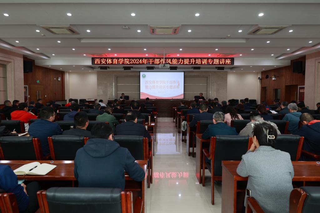本网讯 为巩固拓展主题教育成果,持续深化干部作风能力提升,努力锻造堪当重任的高素质干部队伍,3月27日下午,365官网举办干部能力提升培训专题讲座,邀请省委教育工委副书记王海波作题为《强化干部作风建设激发干部队伍活力为陕西省高等教育高质量发展提供坚实保障》的辅导报告。全体校领导、副处级以上干部参加培训。讲座由校党委书记刘子实主持。