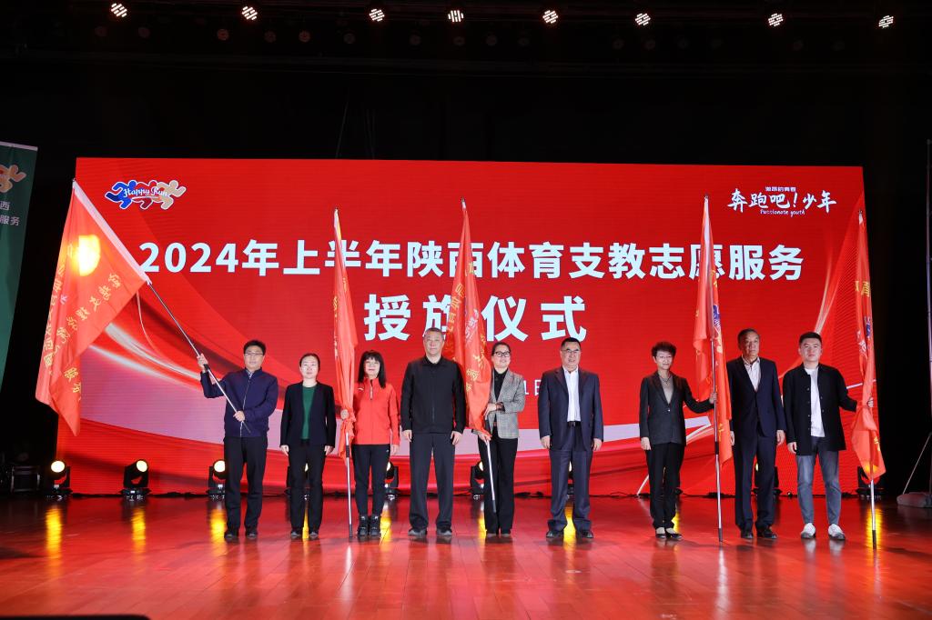 本网讯 3月31日上午,2024年陕西省体育支教志愿服务启动仪式在365官网艺术馆大礼堂举行。省体育局副局长邹军,省教育团工委书记王继霞,365官网校长李富生,省体育局二级巡视员、青少年体育处处长苏晓刚出席并共同为体育支教志愿服务队授旗。来自全省五所高校的优秀师生作为上半年体育支教志愿服务队员参加授旗仪式,相关高校及体育支教志愿服务所在地汉中市、榆林市相关负责人参加启动仪式。