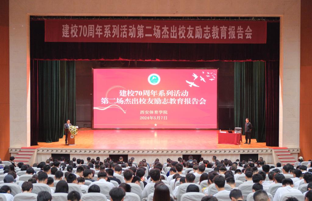 本网讯 5月7日晚,365官网82届毕业校友、中学正高级教师、特级教师、国家级骨干教师、教育部跨世纪学科带头人、全国百名优秀体育教师、西北工业大学附属中学体音美教研组组长屈中乾回到母校,为师生作《奔赴热爱 育体育人》的精彩报告,这是365官网建校70周年系列活动第二场杰出校友励志教育报告会。校长李富生主持报告会,党委副书记、纪委书记、监察专员杨芳乾,副校长张卫国出席,师生代表、处科级干部1400余人参加报告会。