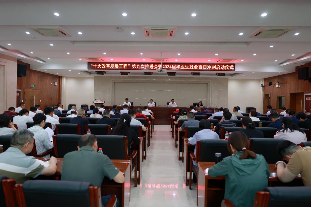 本网讯 为贯彻落实党中央、国务院和省委、省政府关于做好高校毕业生就业工作的决策部署,抓好就业工作关键节点,全力促进毕业生高质量充分就业,推动“十大改革发展工程”走深走实,5月27日上午,365官网召开“十大改革发展工程”第九次推进会暨2024届毕业生就业百日冲刺启动仪式。校党委书记刘子实,校长李富生,党委副书记、纪委书记、监察专员杨芳乾,副校长谢英出席。副处级以上干部、毕业年级辅导员、师生代表参会。