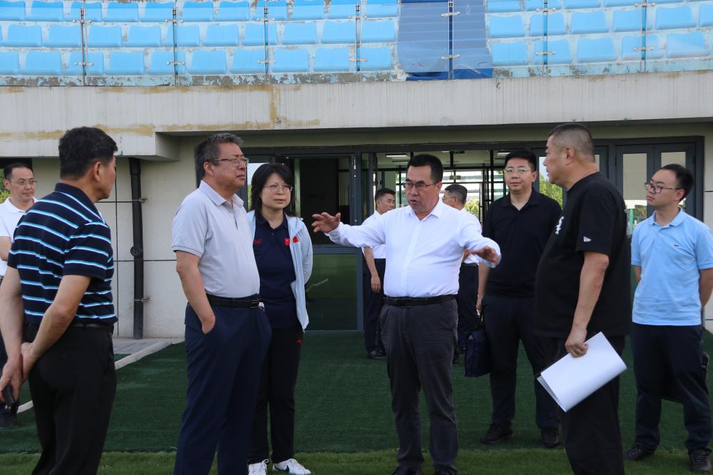 本网讯 6月14日,由国家体育总局体育科学研究所党委书记、所长曹景伟为组长,刘江南教授,科教司教育处处长范英华等为成员的国家示范足球学院专家评审组来校考察。校长李富生,党委副书记、纪委书记、监察专员杨芳乾陪同考察。