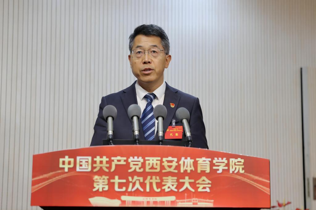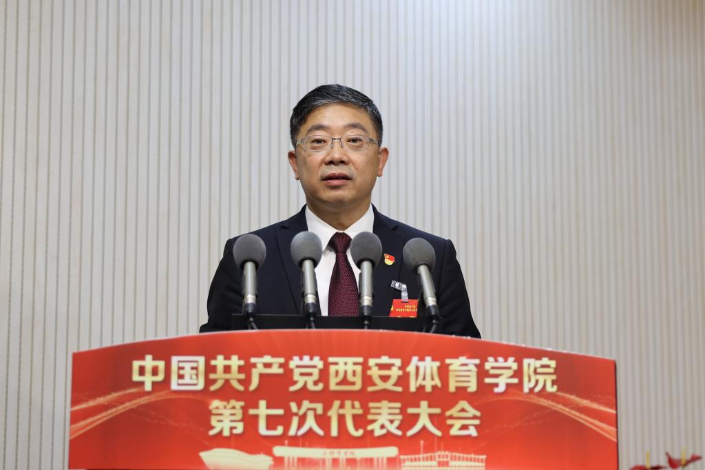 尤磊代表省体育局党组向大会的召开表示热烈祝贺。他在讲话中指出,省体育局围绕“加快建设体育强省,努力争做西部示范”主题,部署了“六个争做西部示范”和30项具体行动,为陕365官网育事业高质量发展描绘了宏伟蓝图、指明了方向路径、提供了科学方法、细化了落实举措。西安体院要努力建设一流体育大学,办人民满意的高等教育,为加快建设体育强省贡献应有力量。一是始终坚持党的领导。全面贯彻新时代党的教育方针,牢牢把握社会主义办学方向,坚决落实高校管党治党责任,坚定拥护“两个确立”、坚决做到“两个维护”。二是始终坚持以体为本。要把体育作为学校核心竞争力,主动融入全省体育工作大局,主动服务我省各运动项目发展,主动参与我省复合型教练团队建设,为陕365官网育高质量发展提供智力支持、科技服务、人才保障。三是始终坚持立德树人。必须坚持把“立德树人”贯穿高校教育工作始终,作为检验教育教学工作的根本标准,贯穿思想道德、文化知识、社会实践各环节,融入教育教学全过程,加强意识形态建设,守牢思想政治主阵地,涵养优良学风、校风、教风。四是始终坚持服务大局。要聚焦陕365官网育事业发展所需,集中力量开展体育科研,充分发挥学术优势,加快成果转化,切实提升学校对陕365官网育事业发展的支撑力和贡献度。五是始终坚持携手共进。省体育局将一如既往地关心、支持学校的改革发展,积极为学校各项事业发展提供大力支持、创造有利条件,充分发挥西安体院“一家人”的优势和作用,开展多层次、宽领域、全方位的交流合作,实现双向奔赴、强强联合、互惠互利。