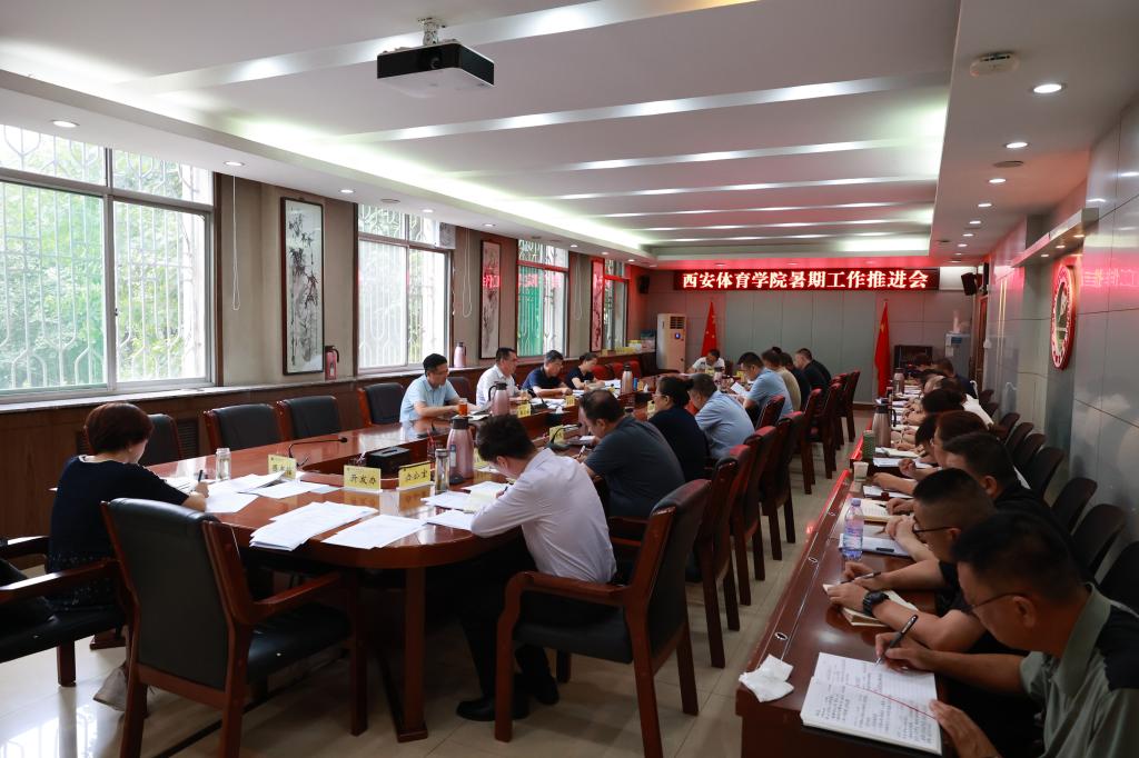 杨芳乾、张卫国、谢英出席会议。党校办、学工部、基建处、学报编辑部、体育新闻与传媒学院、运动与健康科学学院、体育经济与管理学院、马克思主义学院、研究生部及鏖战办等部门主要负责人参加调研和会议。
