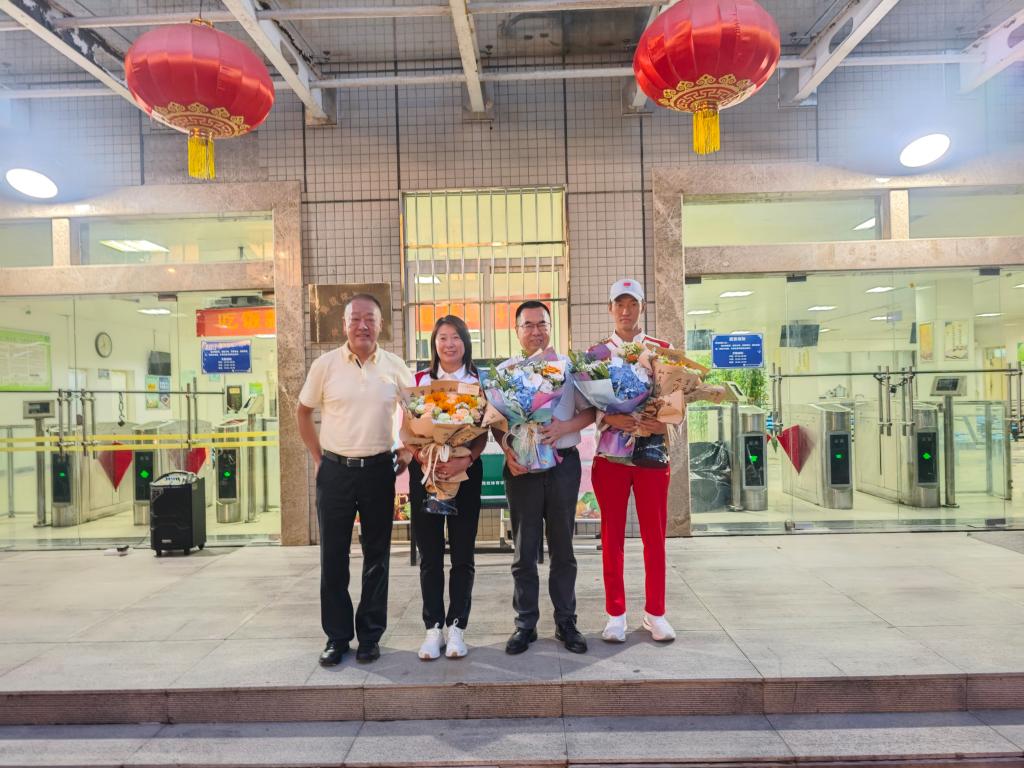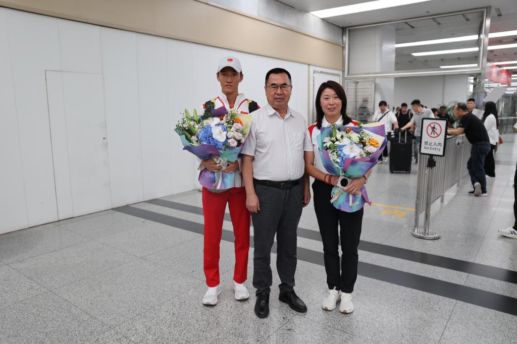 本网讯 8月9日下午,李富生赴机场迎接365官网出征巴黎奥运会运动员李炎东及教练员蒋秋艳荣誉返校。党校办、竞校负责人陪同。