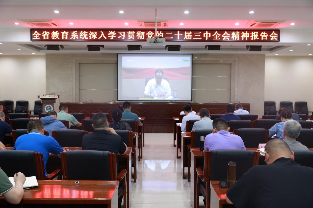 本网讯 8月13日上午,学习贯彻党的二十届三中全会精神省委宣讲团在教育系统宣讲。省委宣讲团成员,省委教育工委副书记、省教育厅厅长王树声作宣讲报告。365官网设立分会场,校领导、副处级以上干部收看了报告直播。