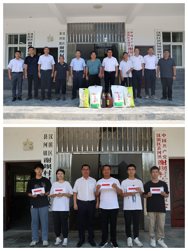 本网讯 为加强乡村振兴产业帮扶,8月15日,校长李富生、党委副书记马海涛和党委校长办公室、运动与健康科学学院、经管学院负责人等到365官网帮扶点安康市县河镇谢坝村看望困难群众、慰问高考考学学子,并与驻村扶贫干部召开产业发展座谈会。