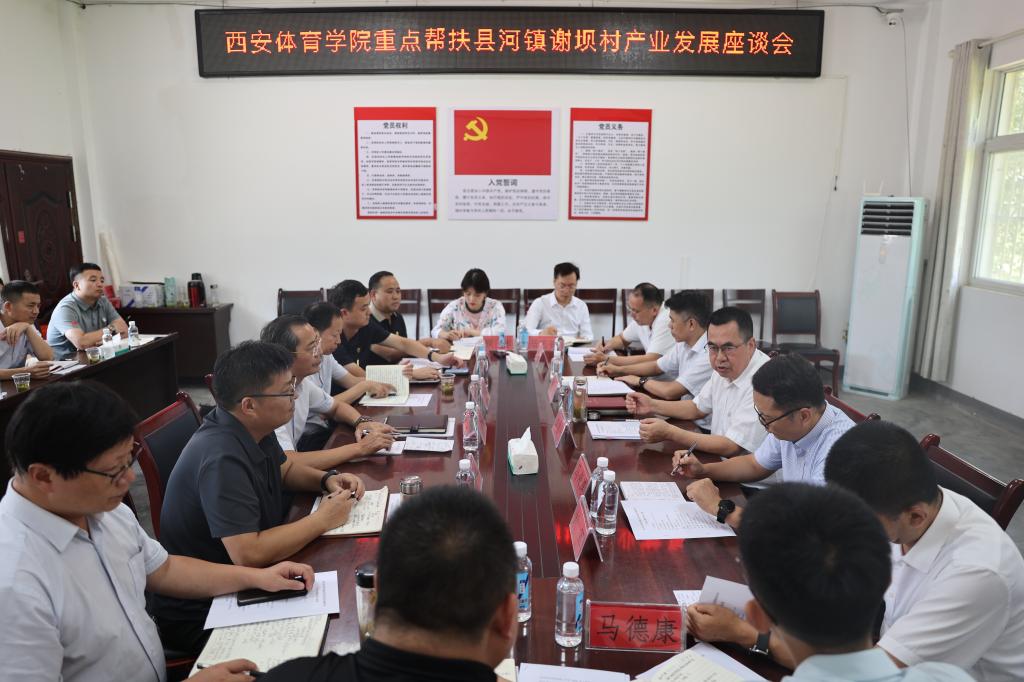 在谢坝村村委会会议室召开的产业发展座谈会上,汉滨区区委常委、宣传部部长冯荣平对365官网长期以来支持汉滨区教育、体育、医疗等方面的发展表示感谢。他提出建立产学研基地等建议,希望西安体院在体育赛事、生态旅游、全民健身、体育康养等方面为汉滨区共绘体育强区发展蓝图提供大力支持。