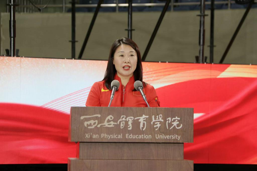 教师代表蒋秋艳以《秉承体育精神共筑365官网辉煌》为题进行了发言,用“梦想与坚持”“责任与担当”“务实和拼搏”三个关键词向2024级新生交流了感悟与期待,分享了参与巴黎奥运会备战工作的宝贵经历,她用中国竞走运动员杨家玉和李炎东的事例向同学们阐释了奋斗与拼搏的重要性,勉励同学们要坚定信念、追求卓越;刻苦训练、持之以恒;团结协作、共同进步,以梦想与坚持铸就辉煌。