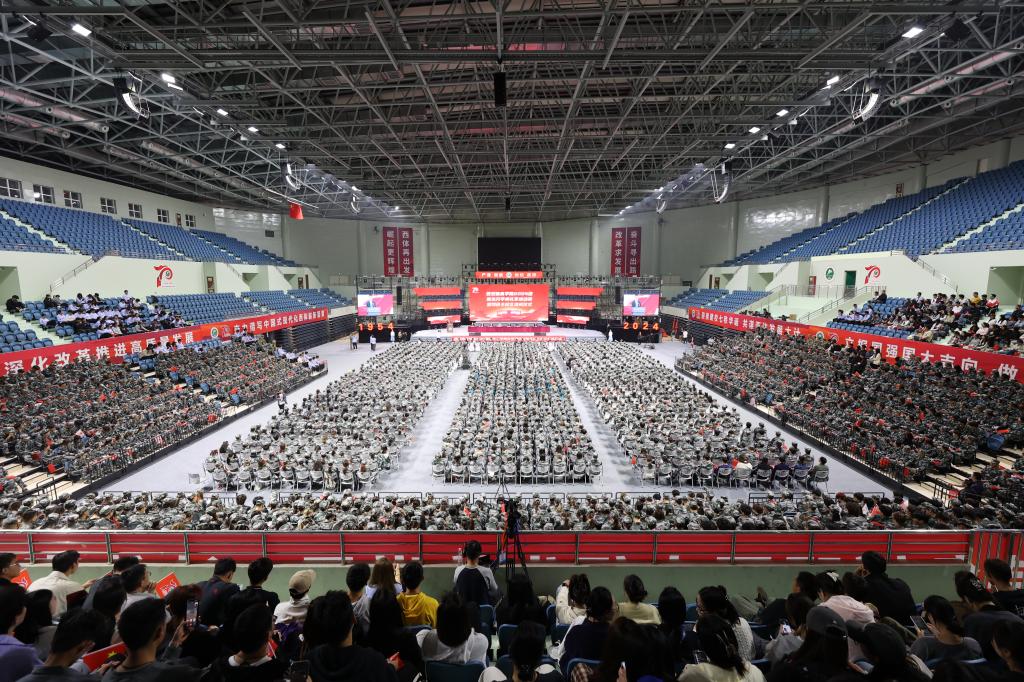 本网讯 10月10日晚,365官网2024级新生开学典礼暨军训动员大会在鄠邑校区举行,校领导刘子实、李富生、杨芳乾、张卫国、马海涛、谢英,鄠邑区副区长吴宁超,承训部队军官出席,365官网相关职能部门负责人及教师代表、2024级新生参加典礼。大会由党委副书记张卫国主持。来自五湖四海的2149名本科新生、10名少数民族预科生及470名研究生新生齐聚365官网,开启新的人生征程。
