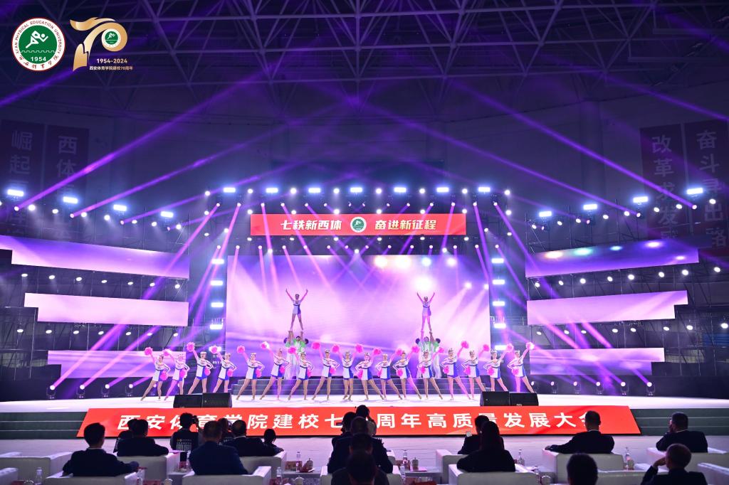 承办、举办两场高层次大会是校庆的亮点、高点、燃点,达到了扩大开放办学、展示办学成果、赢得发展良机的效果。中国-东盟国民体质与健康促进国际学术会议是近年来国内举办的高级别全民健康领域科研合作国际会议,东盟十国、世界卫生组织以及国内和英国、西班牙、美国等专家学者500余人参会。365官网选拔近百余名干部教师、80余名学生志愿者参与大会接待、翻译、展演以及10个会议板块共80多个点位的会务保障等服务,潘玮敏教授应邀作大会主旨报告,87名师生论文入选分会场专题报告、墙报交流等,单列展台展示了办学成果,以出色办会赢得国家体育总局、国外专家学者充分肯定。在建校70周年高质量改革发展大会上,陕西省委副书记邢善萍出席并讲话。陕西省副省长徐明非,国家体育总局副局长刘国永,东亚奥协主席杨树安等领导出席。国家体育总局发来贺信。与国家体育总局体育科学研究所、中国棒球协会以及西北四省(区)10家单位签署了合作协议。学术交流和调研座谈等环节同样精彩纷呈,分别召开“聚焦全面深化改革 助推体育院校高质量发展”学术论坛及圆桌会议、高质量发展调研座谈会、《英国365上市公司官网学报》创刊40周年高质量发展编委座谈会等,国家体育总局、全国体育院校领导和国内外专家学者分享了对于体育、教育、文化、健康等领域的思考和实践,为“强国建设、365官网何为”提供了强有力的思想指导。