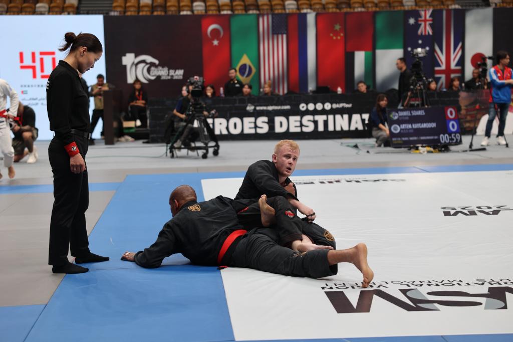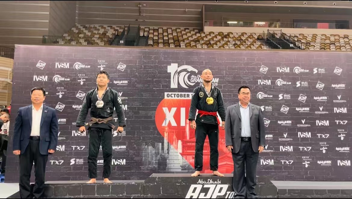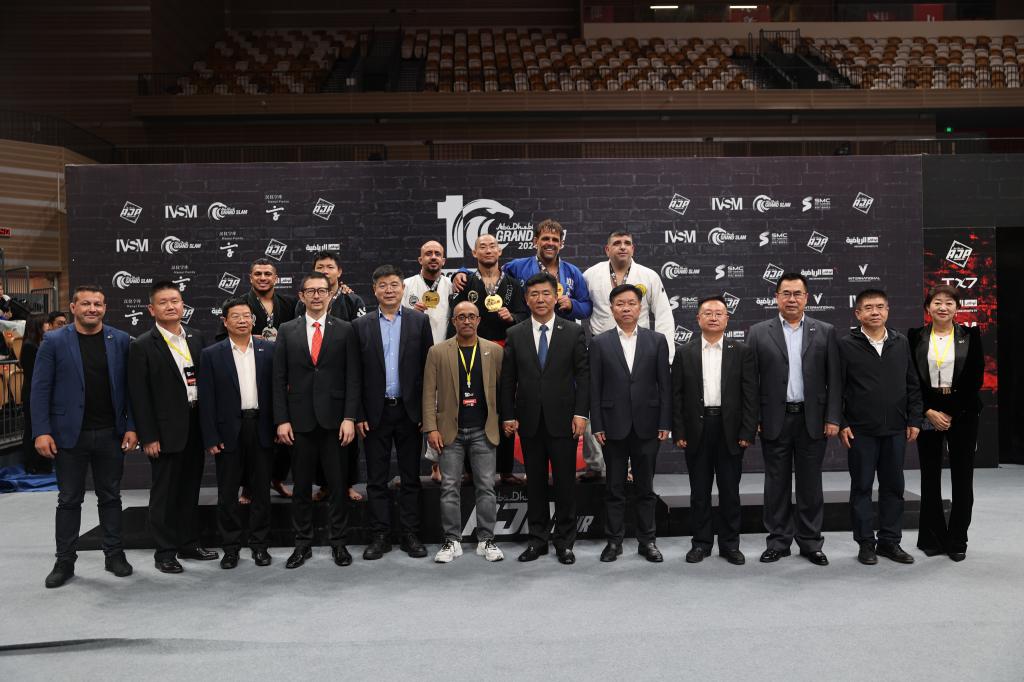 李富生作为特邀嘉宾为男子棕带次中量级大师1组获奖选手颁奖,与国际友人一起感受职业柔术运动的独特魅力,共同见证中阿体育文化交流的丰硕成果。