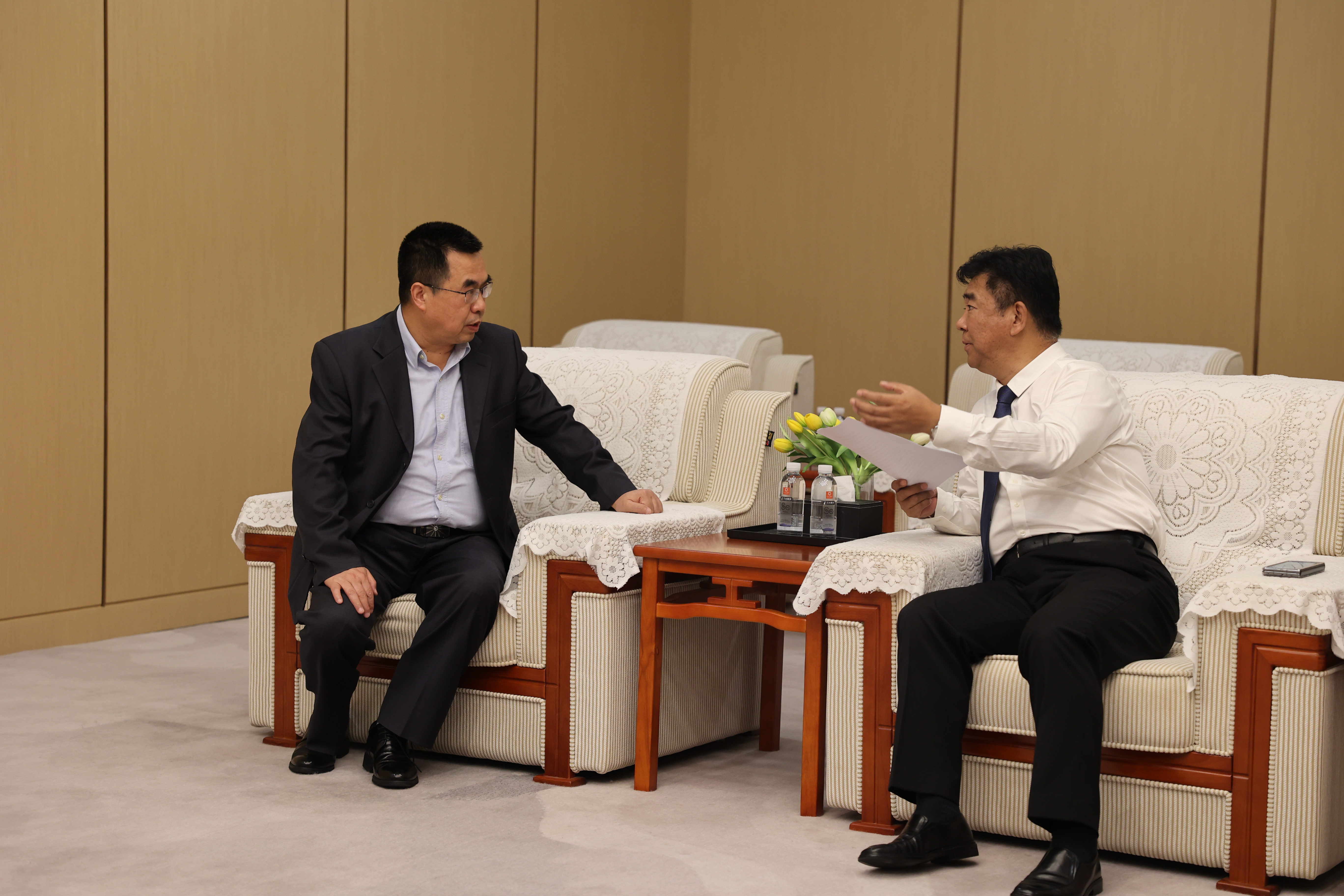 李富生与陕西广电融媒体集团(台)董事长、台长张连业交谈