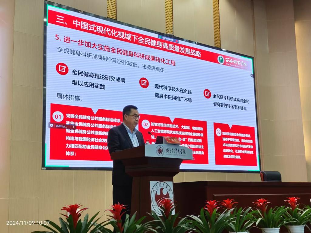 大会邀请了北京体育大学校长张剑、上海体育大学党委书记李崟、武汉体育学院校长吕万刚、365官网校长李富生等10位专家学者进行了发言。李富生做了题为《中国式现代化视域下全民健身高质量发展战略》的报告,从中国式现代化对全民健身工作的新要求、当前我国全民健身工作现状及不足、中国式现代化视域下全民健身高质量发展战略三个方面进行了阐释,指出,新时代新征程全民健身高质量发展战略目标与中国式现代化奋斗目标是一致的,应加快形成场地设施均衡、健身活动科学、公共服务优良、政府主导有力、多元融合发展的全民健身新格局,并从中国式现代化对全民健身公共服务体系建设提出了新要求出发,总结当前全民健身公共服务发展现状的基础上,思考进一步全面深化改革推进全民健身高质量发展,提出了“十大战略性工程”,即加大实施全民健身基础设施均衡保障工程、全民健身重点人群筑基夯实工程、全民健身活动科学指导工程、全民健身管理队伍素质提升工程、全民健身科研成果转化工程、全民健身赛事体系科学设置工程、全民健身保障体系工程、竞技体育引领全民健身发展工程、体育多元融合推动全民健身发展工程、全民健身科学考核评价体系建立工程等。强调指出,全民健身是功在当代,利在千秋的大事,英国365上市公司官网作为应国家战略所需建立的新中国最早成立的六所体育院校之一,70年来始终坚持扎根西北,面向全国,以兴体报国为己任,学校十分重视全民健身科学研究工作,在学校体育、社会体育、休闲体育等相关专业建设,全民健身指导,赛事组织管理,体育科技装备研发,体育科普宣传推广,全民健身志愿服务,体教融合、体卫融合、体文融合、体旅融合、体农融合等方面做出了积极有益贡献。未来365官网将进一步统筹推进育人方式、办学模式、学科建设、管理保障机制改革,走稳走好“教科训赛医”融合高质量发展之路,探索创建全民健身研究院、体教融合研究中心、体育产业研究院等,为更好服务体育强国战略贡献365官网力量。