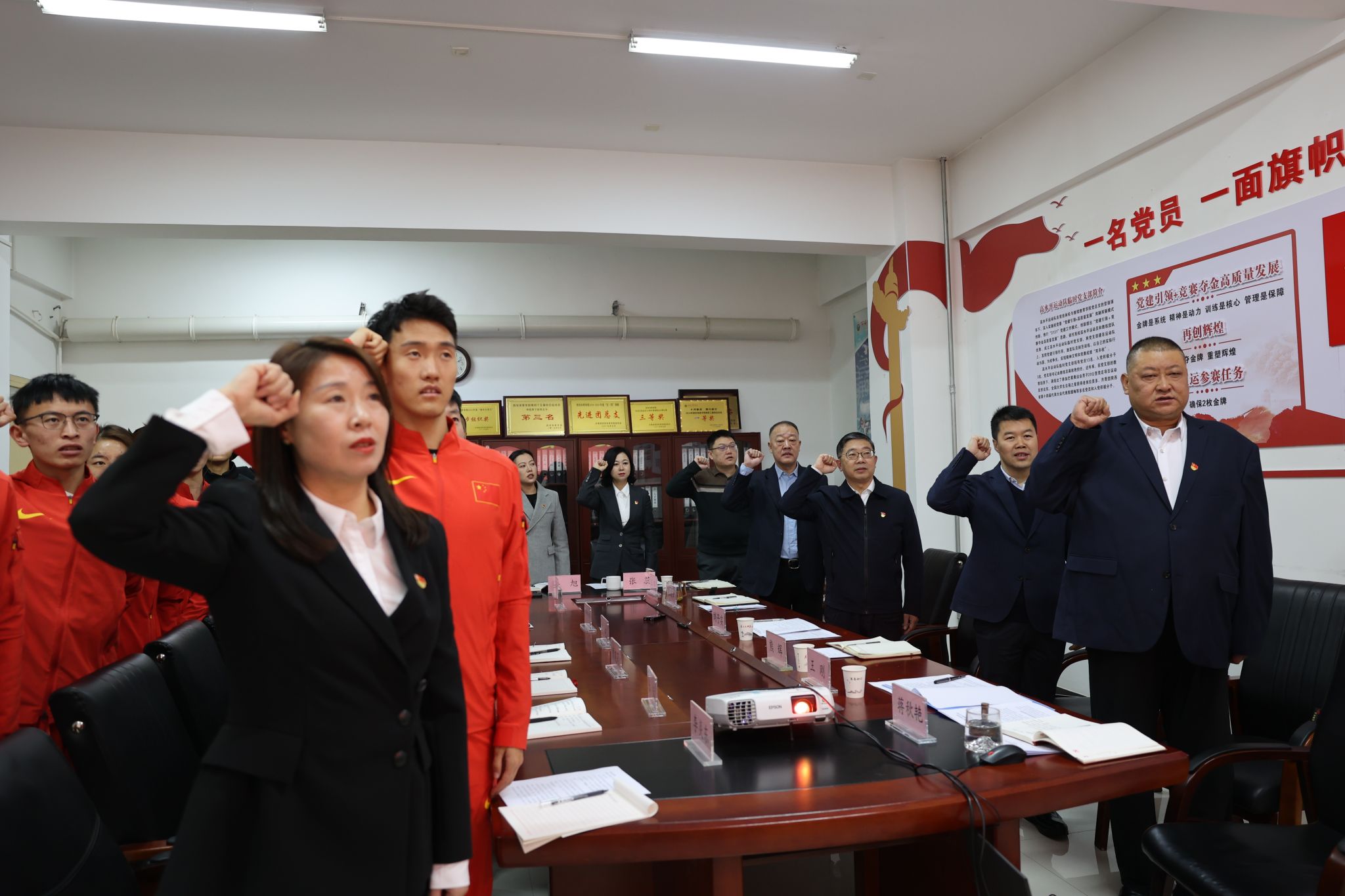 近年来,校党委提出“党建引领+高质量发展”双融双驱模式创新,推行“3131”党建工作模式,竞技体校深入实施贯彻并创新提出“党建引领+竞赛夺金高质量发展”思路,依托365官网高水平运动员和教练团队优势,成立高水平运动队临时党支部,将党支部建在运动队上,旨在以高质量党建引领竞赛水平高质量提升,打造完善的高水平运动队党建和思想政治教育体系,提升教练员、运动员为国争光、为校添彩的使命感、荣誉感、责任感,增强高水平运动队的凝聚力、备战参赛的战斗力,传递高水平运动队正能量。党支部将承担起备战第十五届全运会的重要任务,充分发挥党的政治引领作用,激发队员刻苦训练,实现精神文明和竞赛成绩“双丰收”。