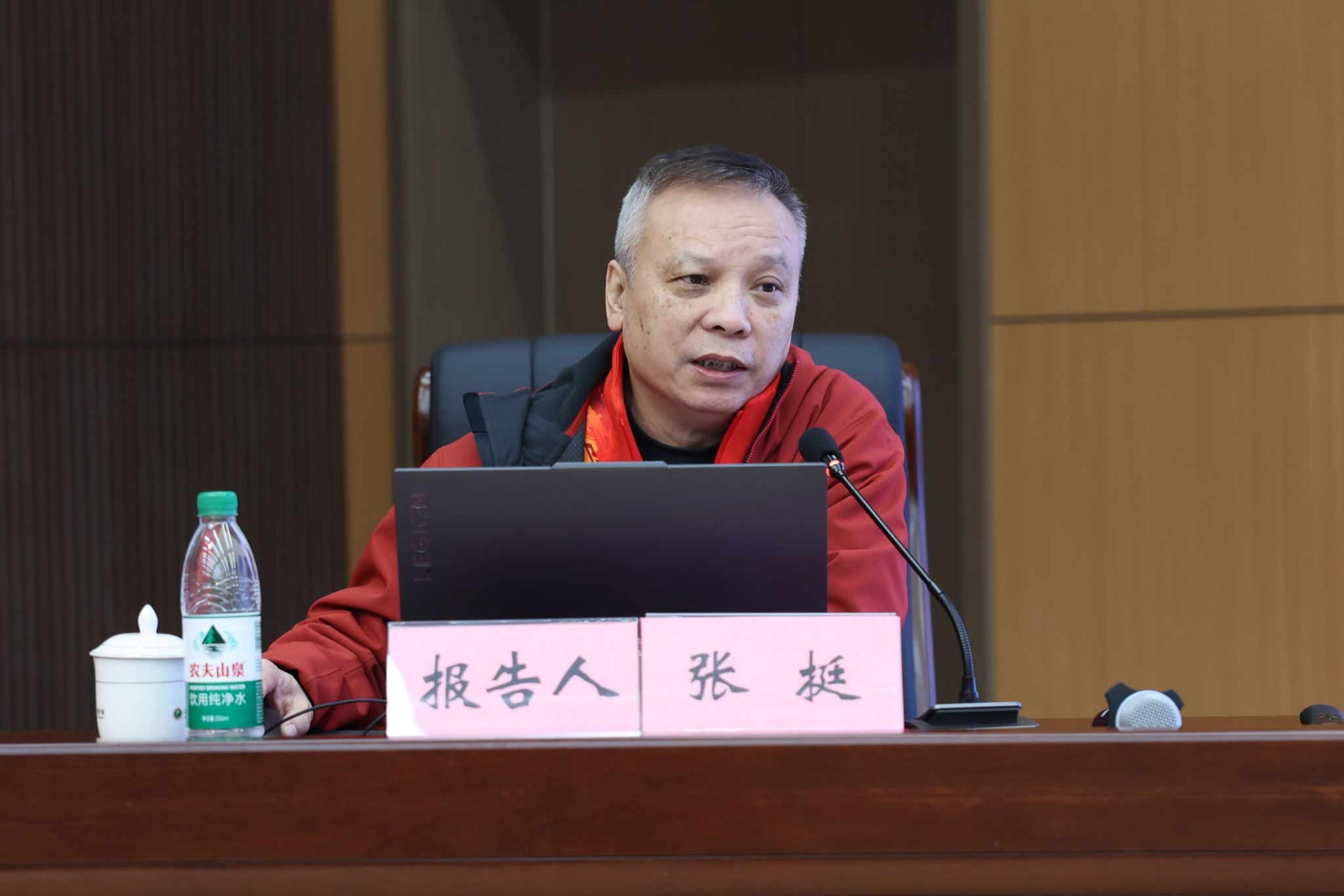 张挺是带出世界跳水冠军“梦之队”的功勋教练、享受国务院政府特殊津贴专家、“全国先进工作者”、原陕365官网育局党组成员、陕西省有突出贡献专家、现为陕西省跳水队主教练。作为一名执教40余年的老教练,向在场师生讲述自己的个人成长、冠军培养、求学执教的经历,围绕“金牌是系统”的主线,从“精神是动力”、“训练是核心”“人才是抓手”、“管理是保障”、“比赛是结果”五个方面,讲述了陕西跳水队自1991年成立以来,在选材育人、训练比赛、科研攻关、思想管理、后勤保障等环节的成功经验及在各大国际赛事斩获200余枚金牌的历程。他鼓励师生要发扬吃苦耐劳、勇于挑战、敢于担当、迎难而上、为国争光的体育精神;要做有梦想有目标的体育人,把梦想转化为精神动力,助推人生进步发展;要目光长远、把握现实规律、善于总结经验、树立终生学习理念,为个人成长成才奠定基础。报告朴实真挚,引起师生共鸣,现场掌声不断。