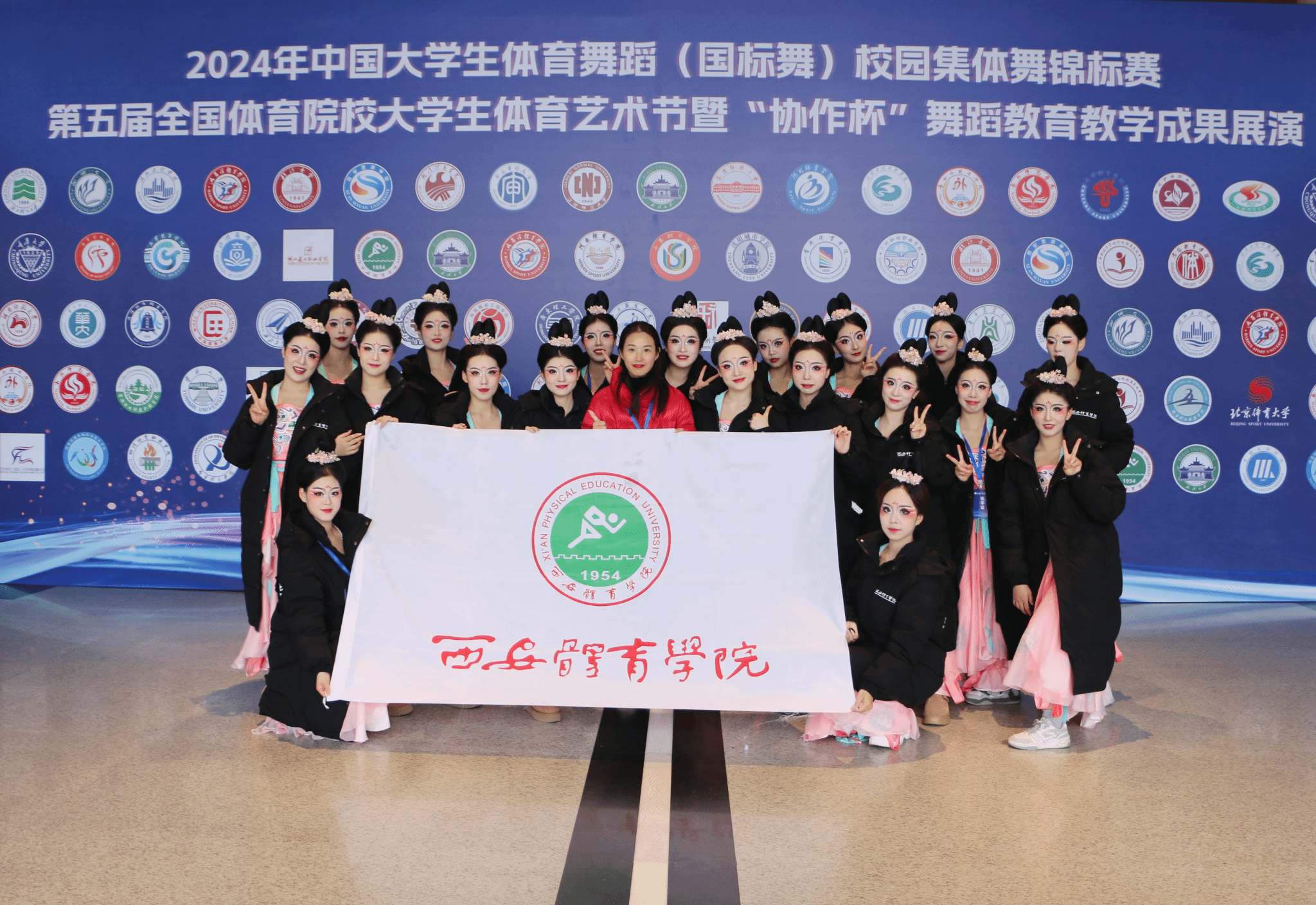 本网讯 12月8日-12日,由国家体育总局科教司指导,全国体育院校艺术类专业建设协作会主办的第五届全国体育院校大学生体育艺术节暨“协作杯”舞蹈教育教学成果展演在湖北省剧院举办。来自全国15所体育院校及6所普通高校,共计47个节目1200余人参加。365官网原创舞蹈《蹴鞠仕女》斩获金奖,教育部全国高校本科教学指导委员会委员马云霞教授及教育部普通高等学校艺术类招生指导委员会副主任委员田培培教授为365官网获奖剧目颁奖。