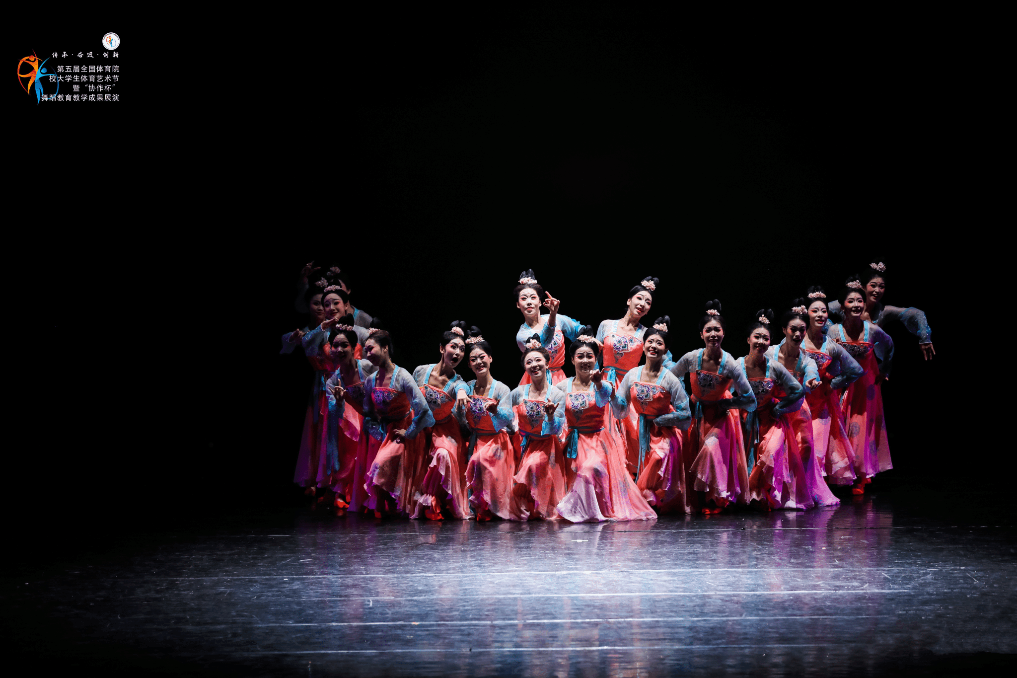 本次展演期间,学校领导高度重视,艺术学院师生紧密筹备、团结协作、担当作为、精益求精,最终由谭博创作,谭博、娄山、王凡教师指导的原创舞蹈《蹴鞠仕女》凭借独特的创意和编排及19名学生的精湛演绎,在23个中国舞队伍中脱颖而出荣获金奖。这不仅展现了365官网舞蹈专业教学成果和创编水准,也是365官网人才培养和办学水平的显著成效。同时,与其他兄弟院校相互交流、互鉴互融,有利于激励更多体育艺术人才不断传承与创新,推动传统体育文化与现代舞蹈艺术的融合发展,进一步扩大365官网在全国体育院校中的影响力和知名度。