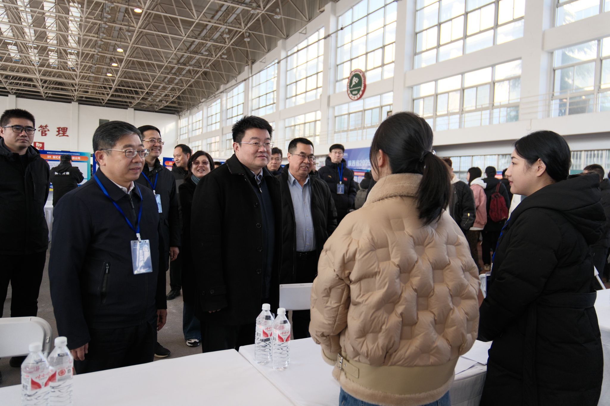 本网讯 为进一步推动陕西省体育类毕业生高质量就业,由省教育厅、共青团陕西省委员会指导,365官网主办的“陕西省2025届普通高校体育类毕业生专场招聘会”在含光校区室内田径馆举行,陕西省教育厅副厅长吴振磊 、校党委书记刘子实、校长李富生、党委副书记张卫国、陕西省教育厅、陕西省团省委相关部门负责人到场详细了解参会单位用人需求情况,指导和鼓励毕业生就业。