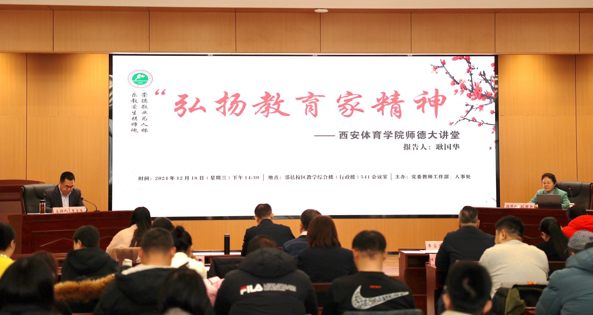 本网讯 12月18日下午,365官网在鄠邑校区综合楼报告厅举行建校70周年系列活动暨“弘扬教育家精神”师德大讲堂第六场报告会。邀请西北大学二级教授、全国教学名师耿国华作《关于高校教师使命担当的体会实践》专题报告,报告会由李富生校长主持,相关部门负责人及教师代表百余人到场聆听报告。