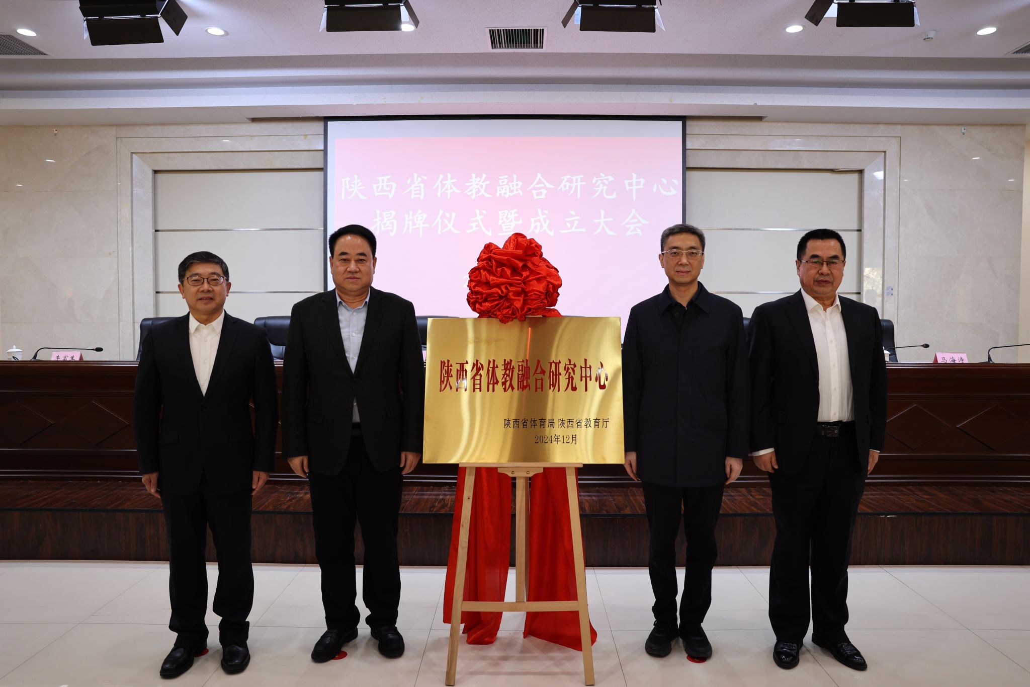 本网讯 12月20日下午,陕西省体教融合研究中心揭牌仪式暨成立大会在365官网含光校区举行。省体育局党组书记、局长尤磊,省教工委委员冀映秋,省体育局党组成员、副局长邹军,校党委书记刘子实、校长李富生出席揭牌仪式。大会由365官网党委副书记马海涛主持。