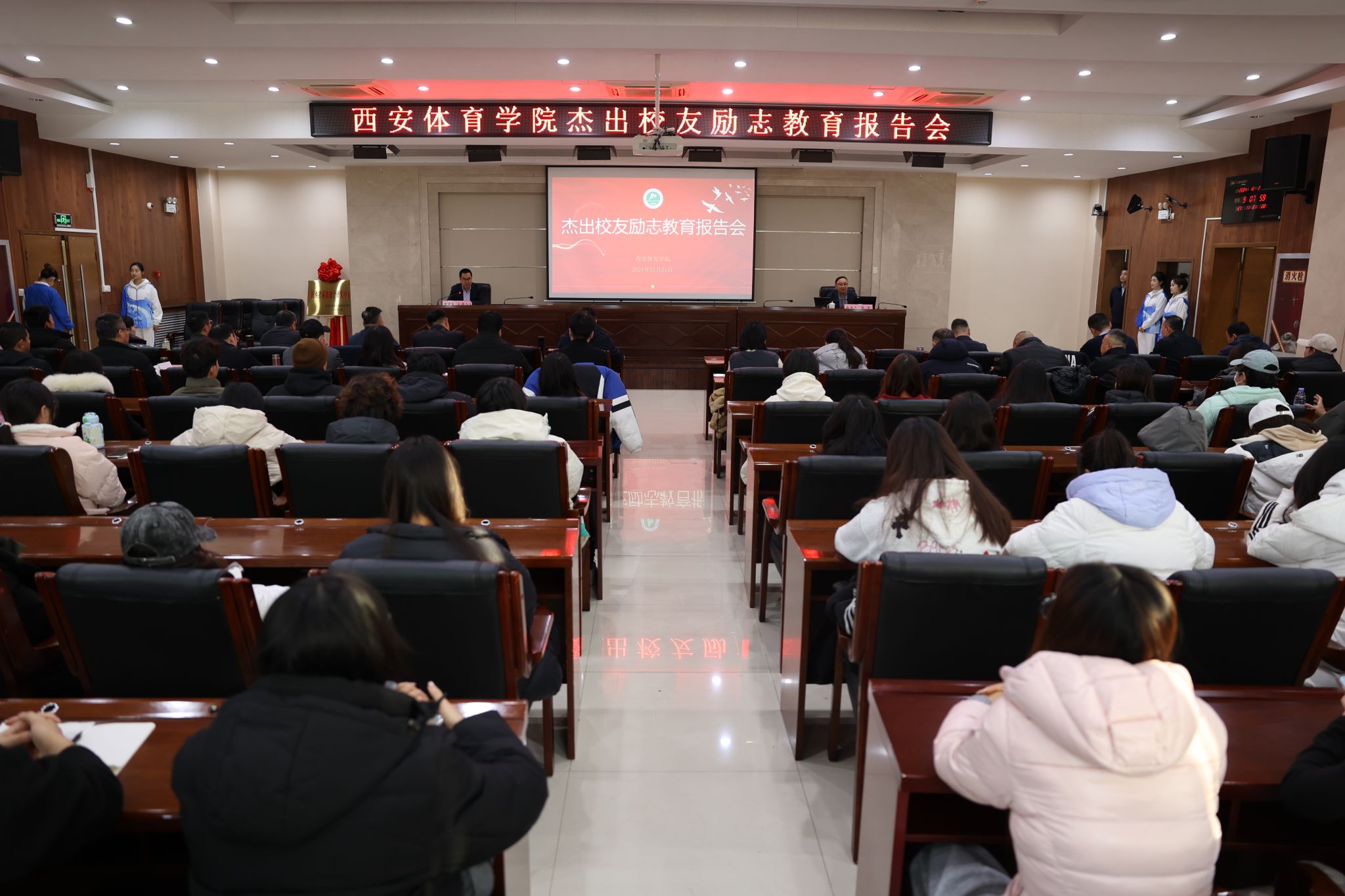 本网讯 12月21日,李富生在含光校区报告厅主持召开第七场杰出校友励志教育报告会。365官网79级杰出校友,曾任国家体育总局乒乓球羽毛球运动管理中心主任,中国乒乓球协会副主席兼秘书长雷军为师生作《学习、感悟、实践——做好母校延长线》精彩报告。副校长张葆欣出席,师生代表到场聆听。