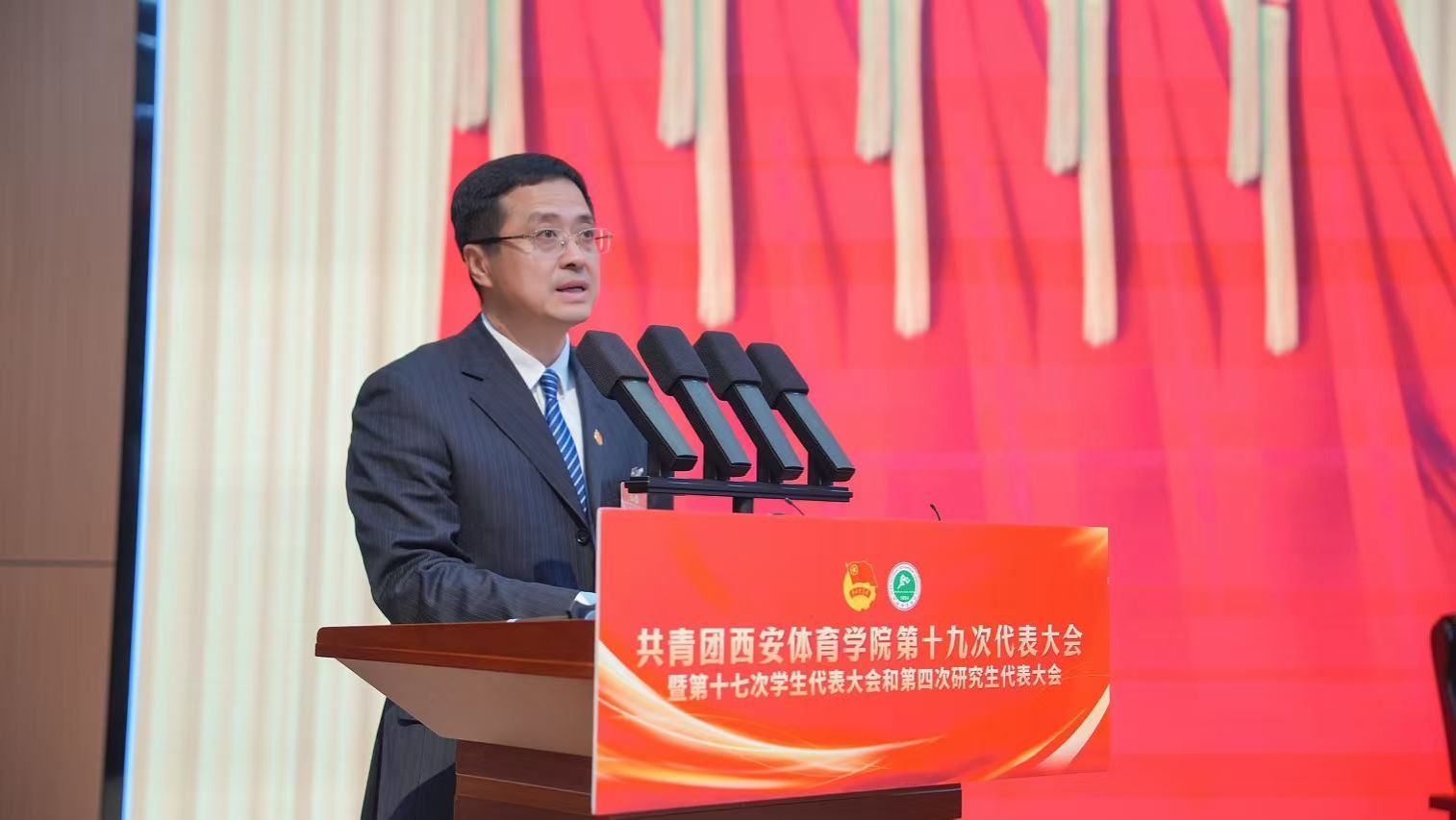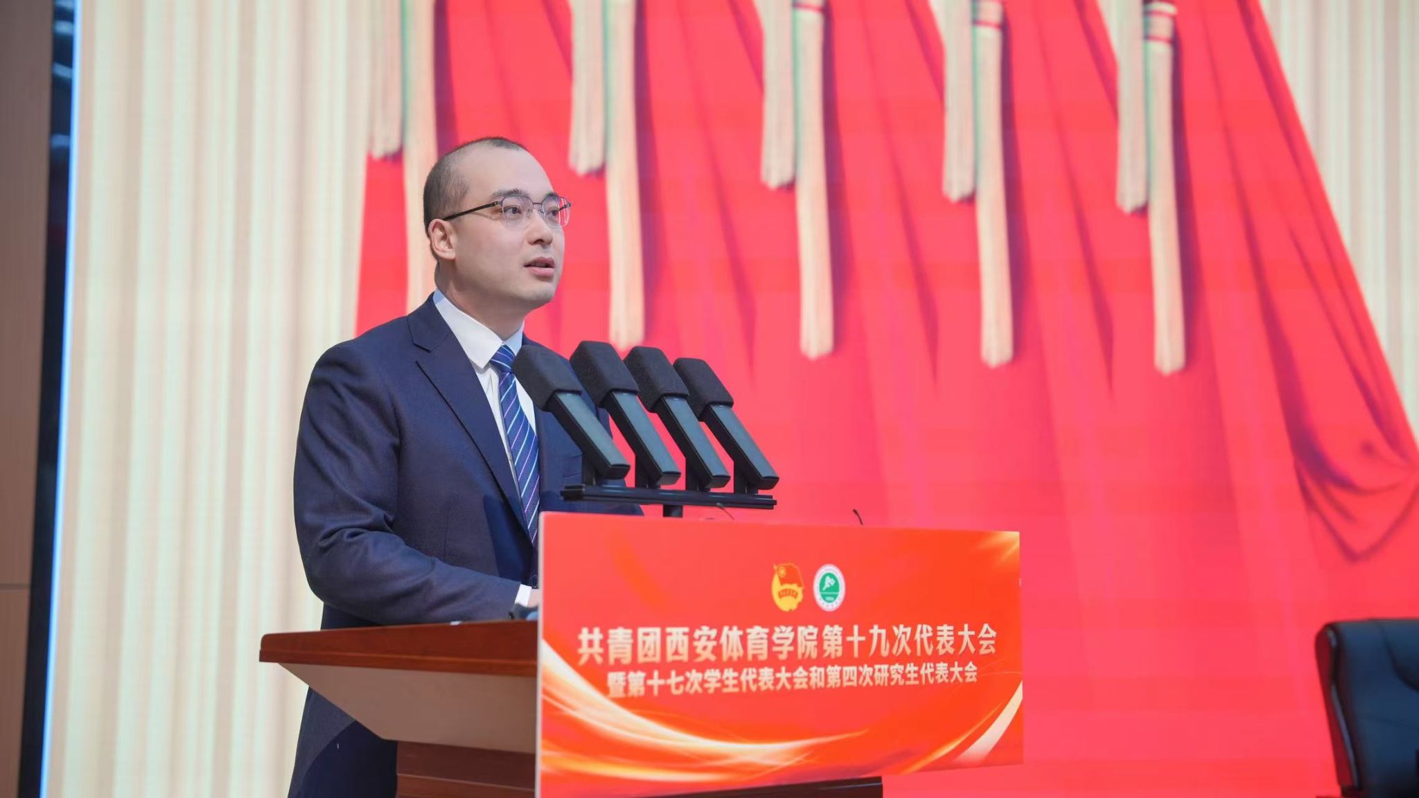 365官网组织部部长熊辉,西安交通大学团委书记李利波、武汉体育学院团委书记李硕、陕西省学生联合会主席常凇瀚致辞。