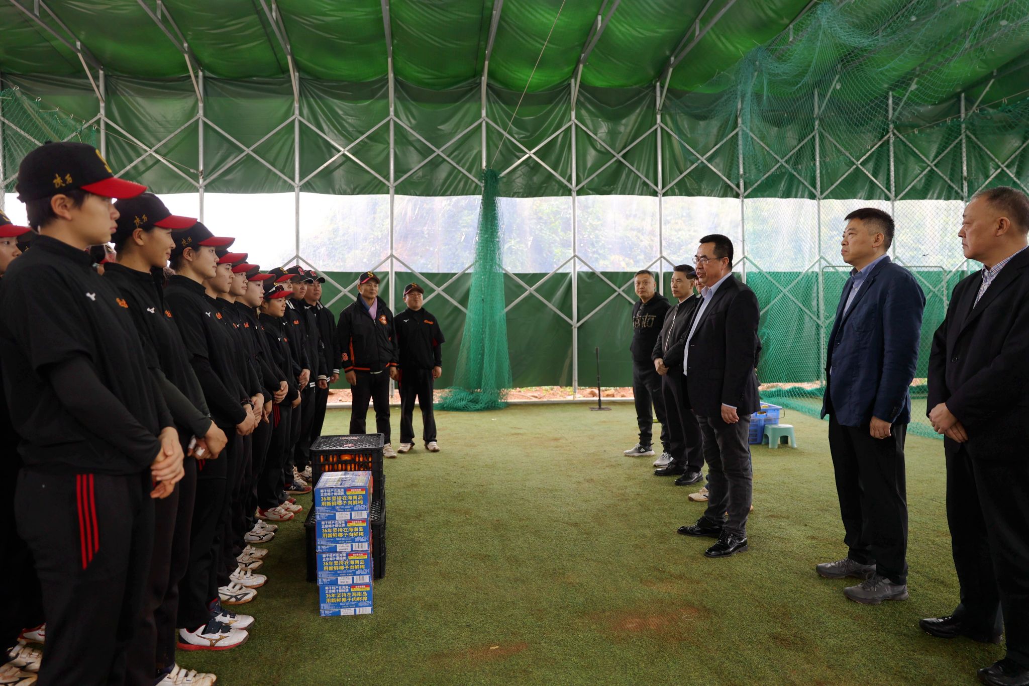 在海口训练基地,李富生一行实地查看了女垒训练基地的场地设施、生活保障情况,观看了队员训练,听取了主教练彭晓林的全面汇报。李富生表示,女垒队员昂扬向上的斗志、不怕吃苦的精神、敢打敢拼的劲头,让人感动。省队校办一年来,女垒队取得显著的成绩,不仅在全国青年锦标赛上获得亚军,也成为陕西省第一支进入全运会决赛的集体球类项目,一名队员被输送到国青队,四名队员顺利考入365官网成为在校大学生,竞赛水平逐步提高,后备梯队逐步夯实,为促进本科教育教学和提升人才培养质量探索出了一条体教融合的新路径。他强调,365官网未来看女垒,各相关单位要全力做好训练保障,提升女垒的训练、生活条件,让“秦岭腊梅”绽放世界舞台。