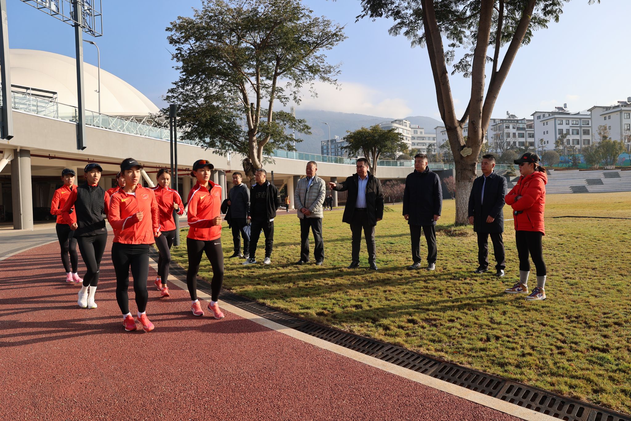 在玉溪训练基地,李富生一行观看了竞走队员的训练情况,听取了中国竞走学校教练蒋秋艳关于此次外训计划、队员身体状态和阶段性训练成果的汇报。李炎东代表运动员作了表态发言,表示将秉承团结、拼搏、进取的精神,以更加饱满的热情投入到训练中,不断提升技术水平,为即将到来的世锦赛及十五运做好充分准备,为陕西争光,为365官网添彩。李富生对竞走队全体教练员、运动员、保障人员放弃节假日、远离家乡亲人外出训练的精神和当前取得的训练成绩表示肯定。他指出,冬训是提升体能、磨练意志的关键时期,此时的辛勤付出将为未来争金夺银打下坚实的基础。希望大家进一步科学训练,最大限度地发挥运动员的潜能,减少不必要的运动损伤;从严管理,培养运动员良好作风,保障训练有序进行,锻造一支能打胜仗的“竞走铁军”,为中国竞走事业争光添彩。