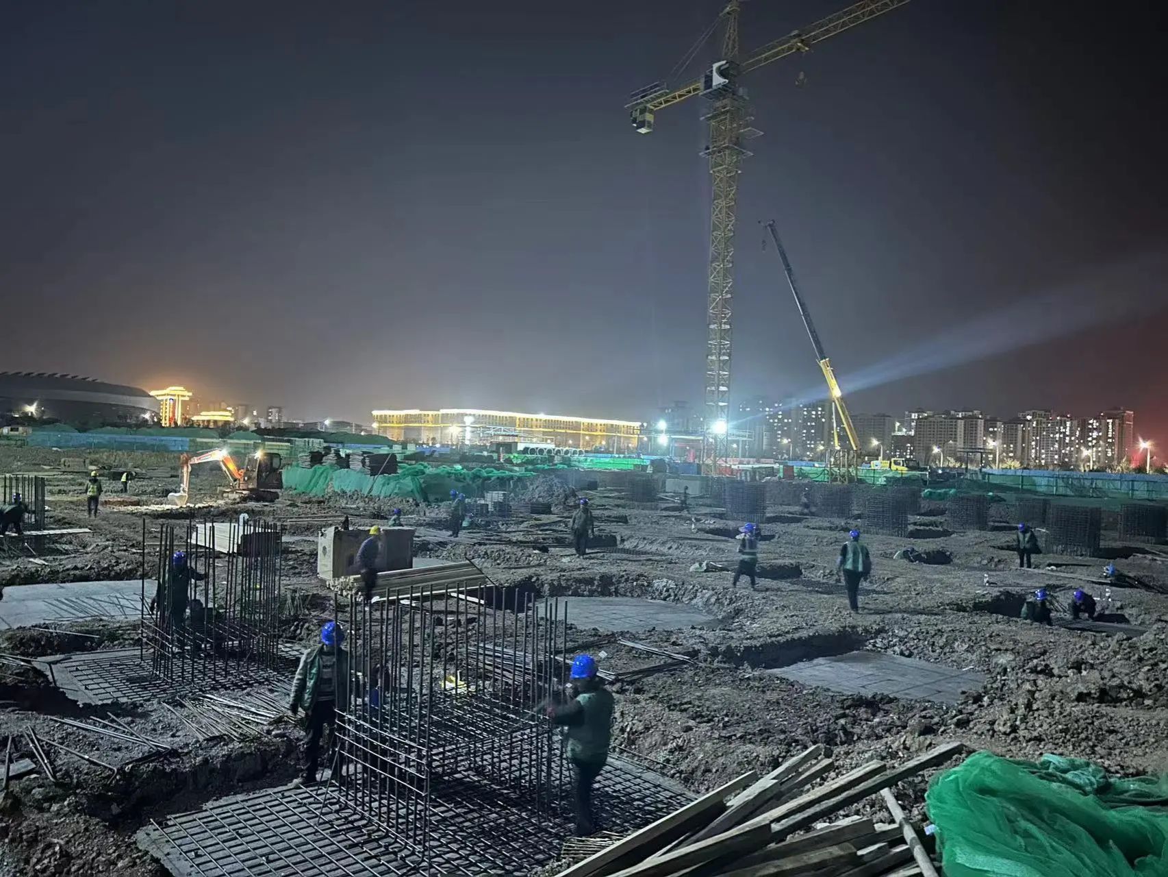 2024年,正在夜间作业的教学综合楼施工现场