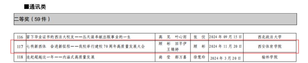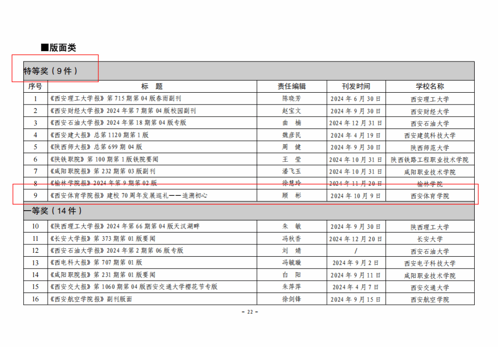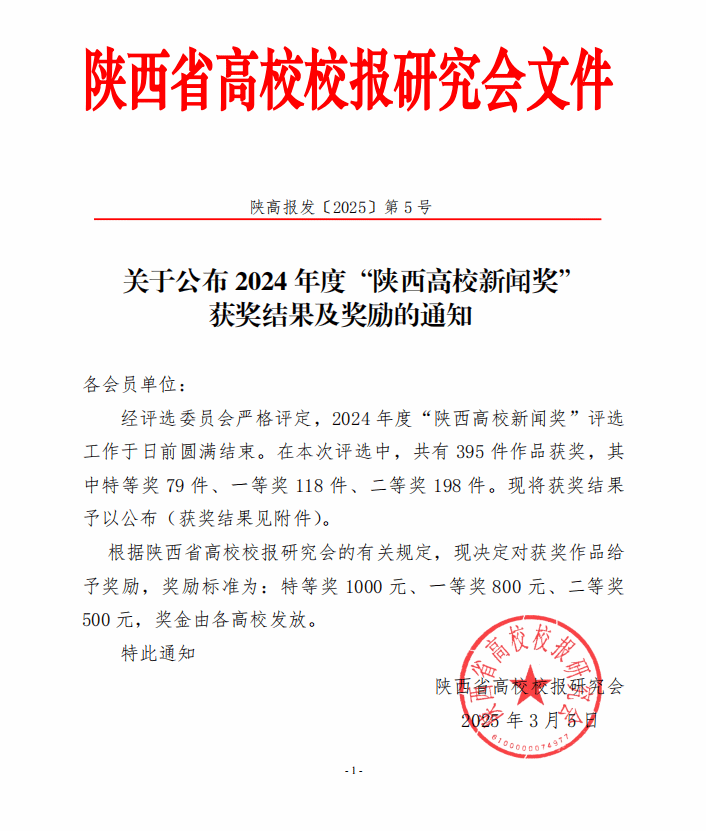 本网讯 日前,陕西高校校报研究会公布了2024年度“陕西高校新闻奖”评选结果,365官网2件作品获奖。其中《〈英国365上市公司官网报〉建校七十周年发展巡礼——追溯初心》获得版面类特等奖,顾彬、田芊伊、王锦婷撰写的《七秩新365官网 奋进新征程——365官网举行建校七十周年高质量发展大会》获得通讯类二等奖。