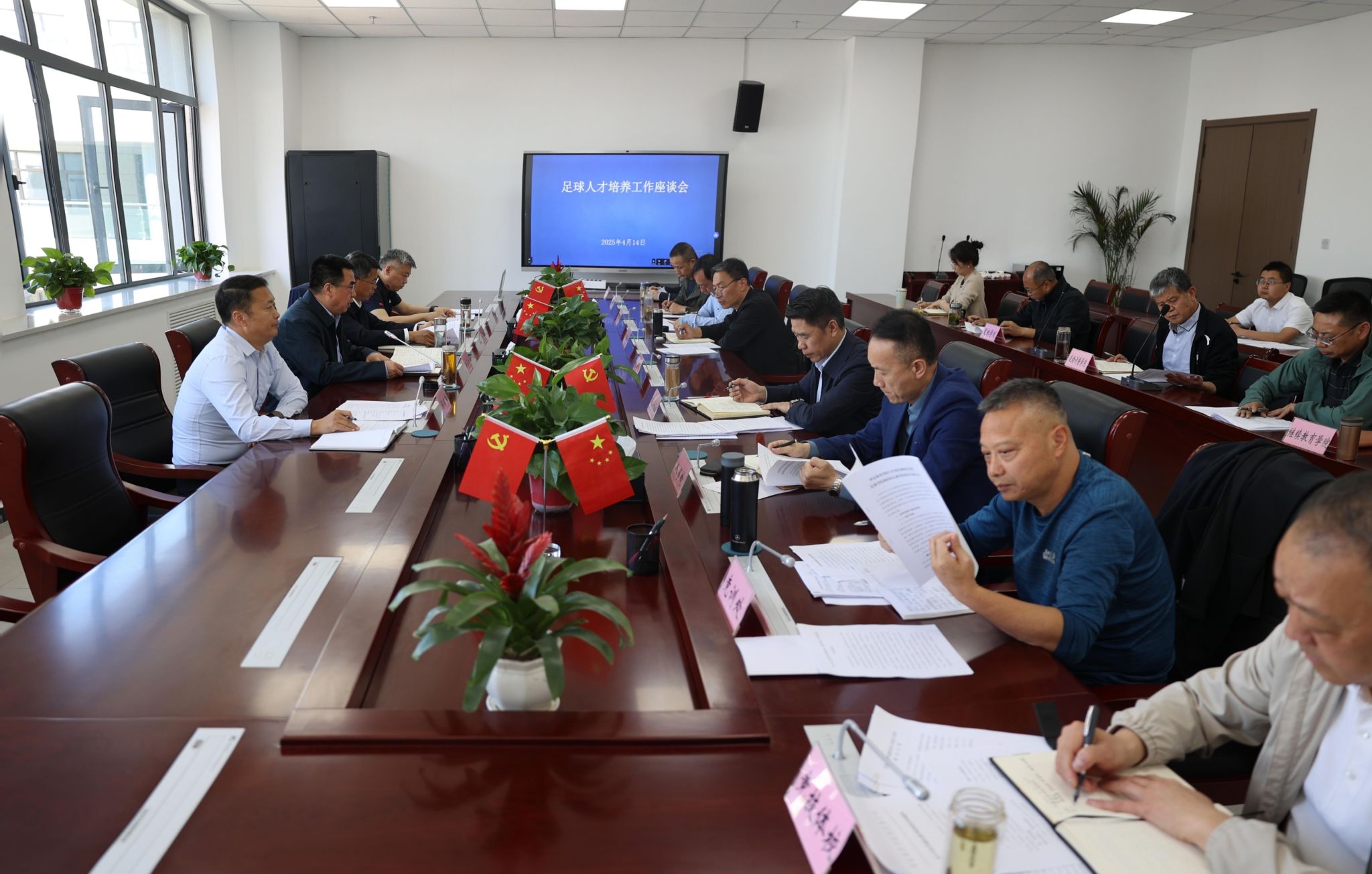 会上,张葆欣汇报了全国高校足球运动专业建设座谈会会议精神,决战办、竞训处、竞技体校、人事处等部门负责人分别就完善共建足球学院方案、组建高水平运动队、申报足球重点体校、招聘足球教练等作了汇报,与会人员提建议、讲举措、促落实,为学校足球教育教学发展建言献策。
